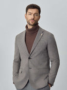 Lesidure unstructured houndstooth blazer expertly tailored from wool blend with notch lapels, two-button closure, welt pockets with flap and two back vents. Sleeves with four-button cuffs. It's fully lined for smooth layering. All blazers have regular fitting measures from sizes 56 to 62. This blazer cut and fabric is neat and comfortable for a soft and airy handle.