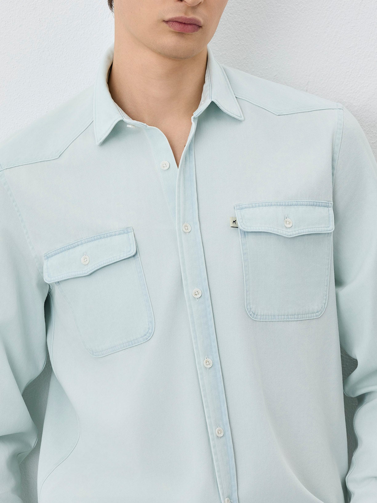 Relaxed Fit Denim Shirt With Patch Pockets In Cotton