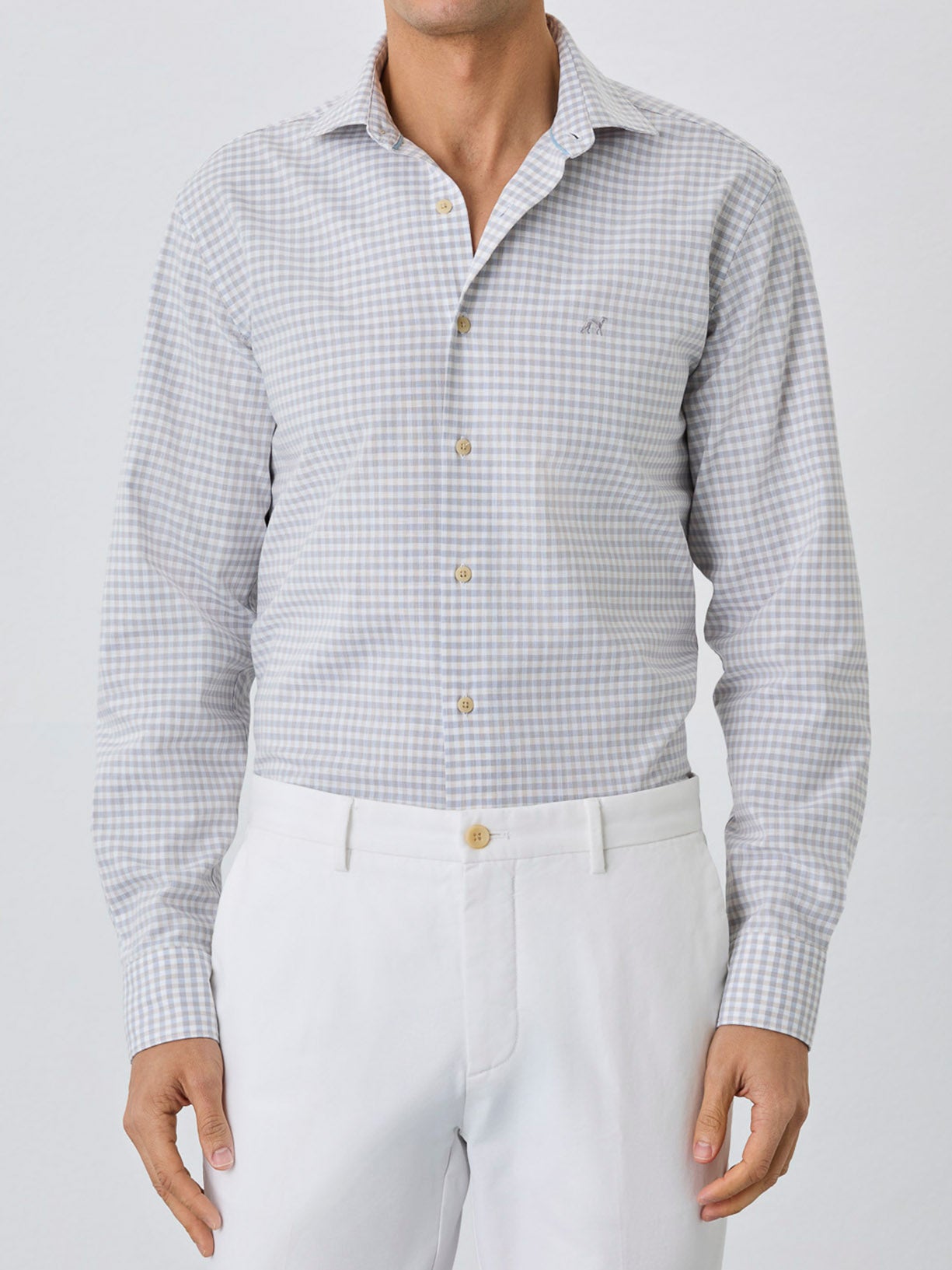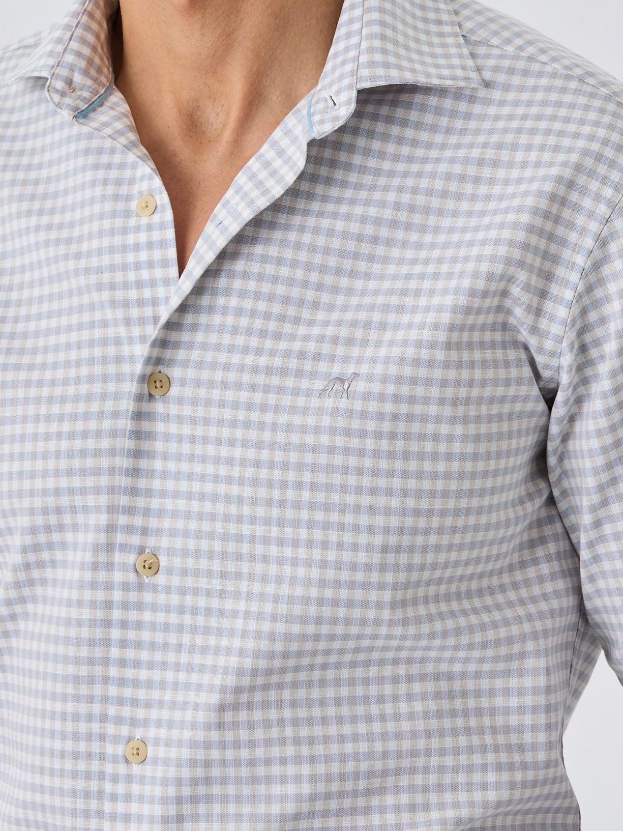 Slim Fit Shirt With Open Collar In BCI Cotton With Checks