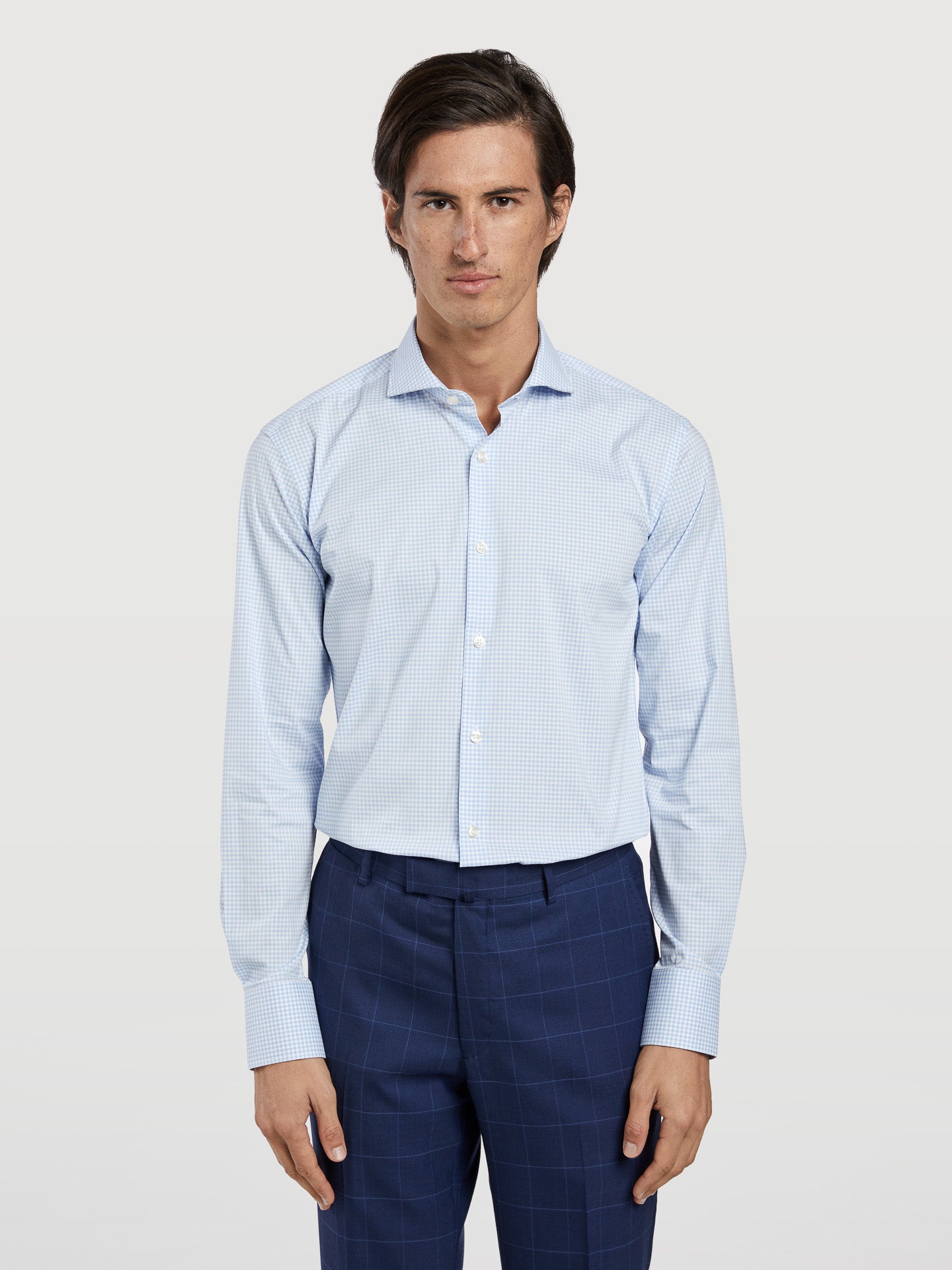 The men's suits from Sacoor Brothers are available with 'Drop 5' and 'Drop 6'. This designation refers to the difference between the blazer size and the trouser size. When ordering a size 46 with 'Drop 5', the trousers will be around size 41, while 'Drop 6' will result in trousers of size 40.