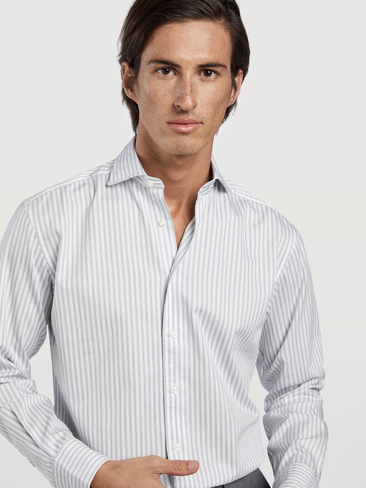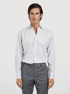 Experience the epitome of timeless style with our Slim Fit Business Striped Formal Shirt from the ICON Business line. Crafted from high-quality 100% cotton, this shirt combines sophistication with a naturally distressed look. The slim fit design ensures a sleek and tailored appearance, perfect for various occasions, whether formal or casual. It features a Bristol collar, which adds a touch of elegance and versatility to your outfit. The front button-up fastening enhances convenience, making dressing up a breeze. Long sleeves with single cuffs, secured with a single button, offer a classic and timeless look. The side gussets in contrast fabric showcase the attention to detail and craftsmanship that goes into each shirt. Whether you're heading to a formal event or a more relaxed occasion, this shirt is a versatile addition to your wardrobe. Its excellent quality and striped satin twill fabric make it a must-have for any man looking to make a stylish statement. It's the perfect fusion of classic and contemporary style, ensuring you look your best no matter the setting.