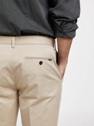 The men's suits from Sacoor Brothers are available with 'Drop 5' and 'Drop 6'. This designation refers to the difference between the blazer size and the trouser size. When ordering a size 46 with 'Drop 5', the trousers will be around size 41, while 'Drop 6' will result in trousers of size 40.
