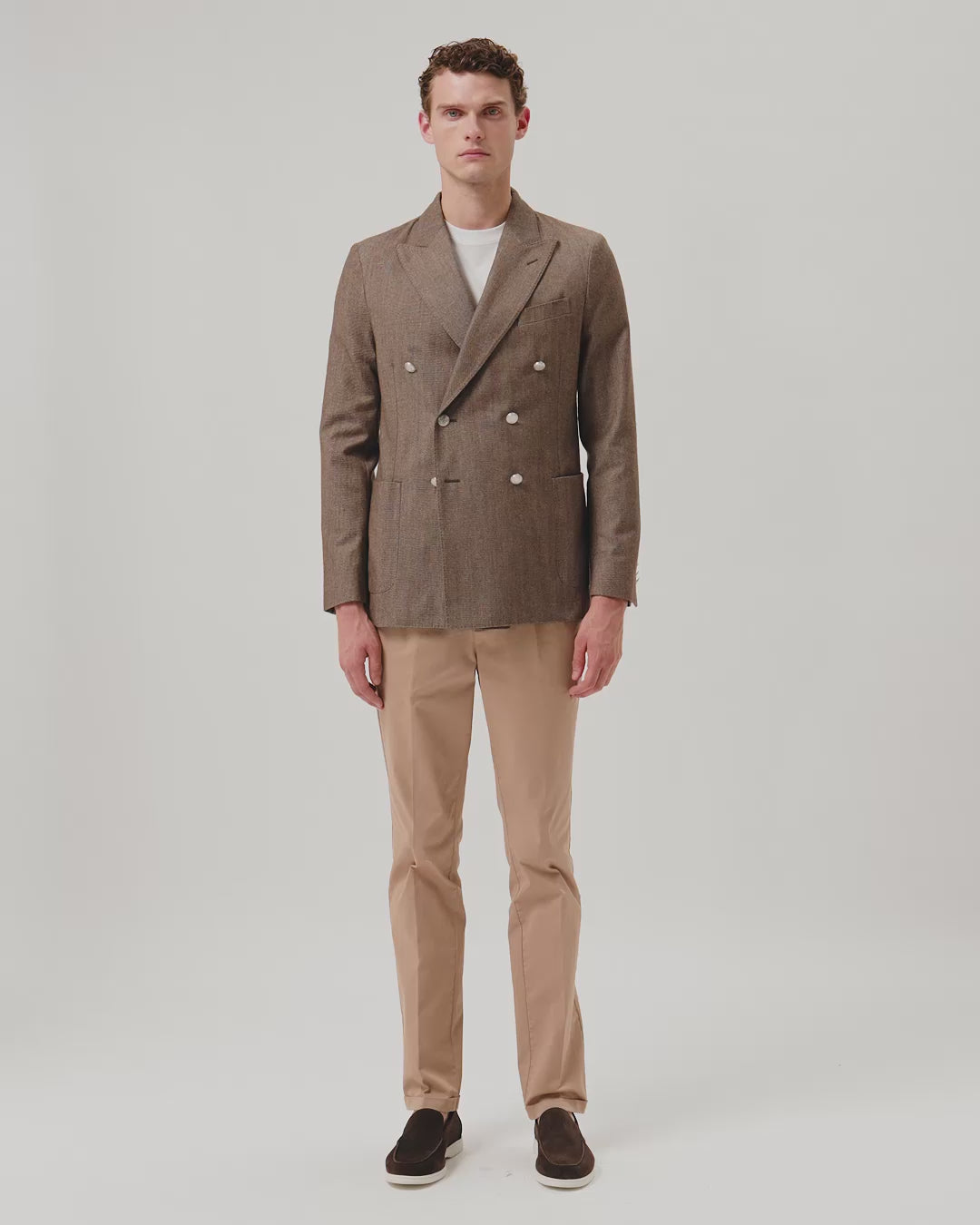 The men's suits from Sacoor Brothers are available with 'Drop 5' and 'Drop 6'. This designation refers to the difference between the blazer size and the trouser size. When ordering a size 46 with 'Drop 5', the trousers will be around size 41, while 'Drop 6' will result in trousers of size 40.