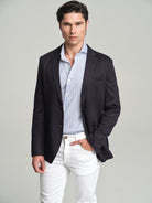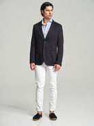 K-Easy Comfy blazer constructed in comfort jersey for maximum comfort and relaxed feel. This blazer has two-button closure, notch lapels, long sleeves with four-button cuffs and two back slits. Featuring chest pocket, two patch pockets with coins pocket inside and interior pockets. The slim fit is an updated version of the classic blazer, affording greater adaptability without losing breathability and comfort. All blazers have regular fitting measures from sizes 56 to 62.