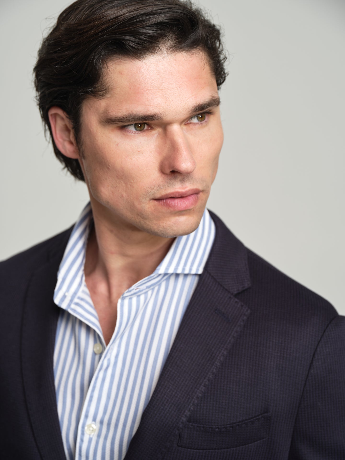 The men's suits from Sacoor Brothers are available with 'Drop 5' and 'Drop 6'. This designation refers to the difference between the blazer size and the trouser size. When ordering a size 46 with 'Drop 5', the trousers will be around size 41, while 'Drop 6' will result in trousers of size 40.