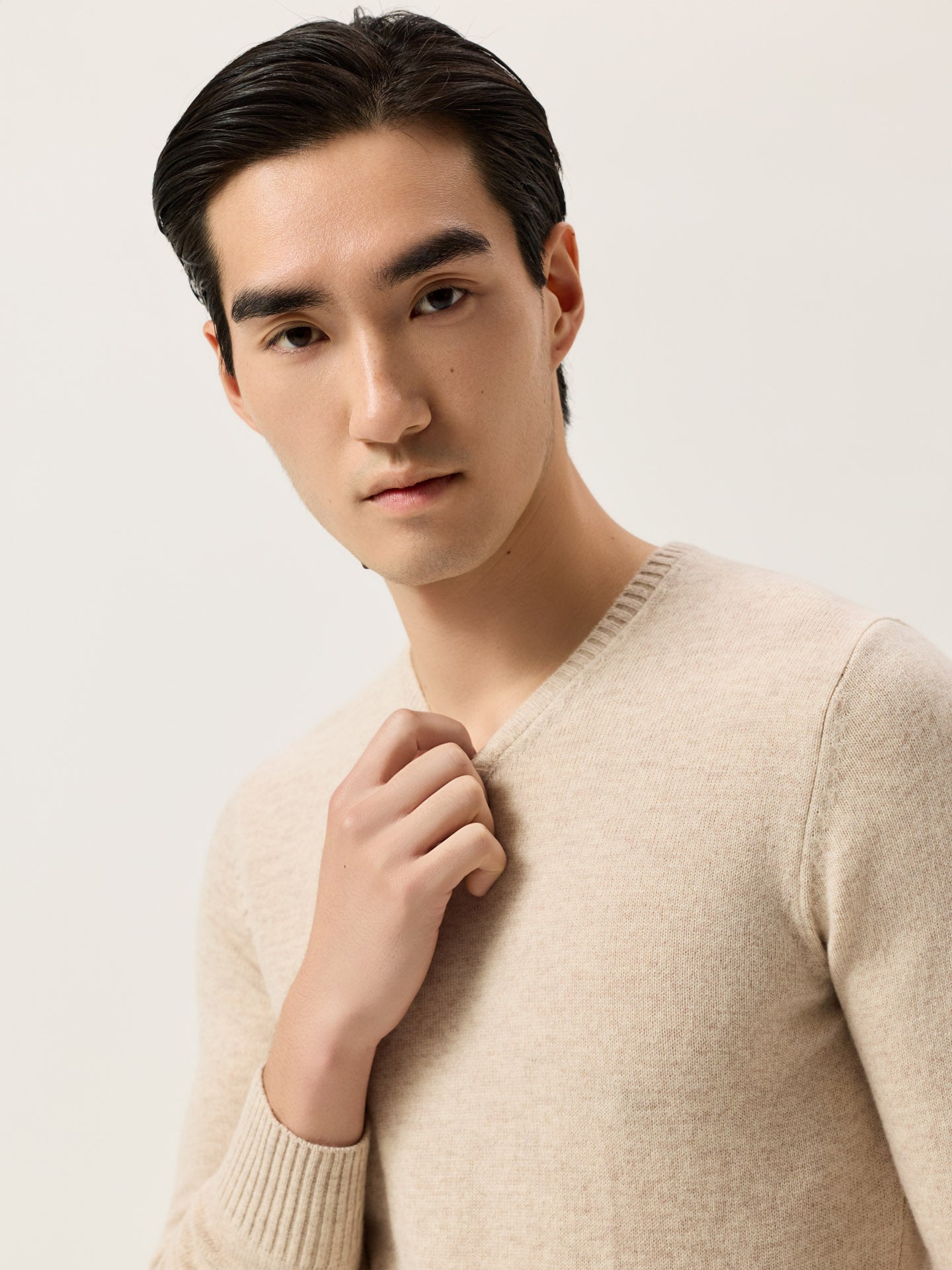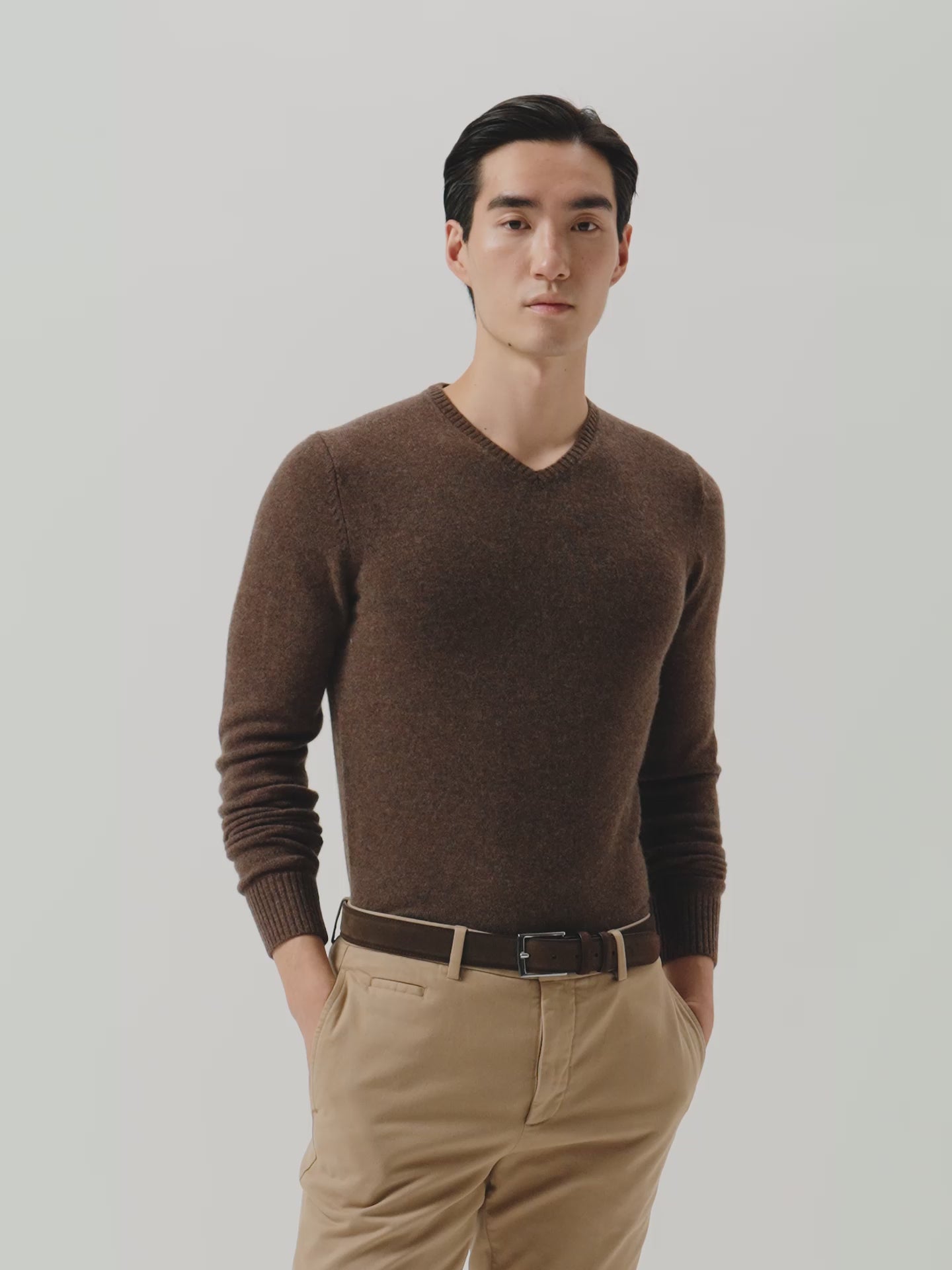 Long Sleeve V-Neck Sweater In Pure Lambswool