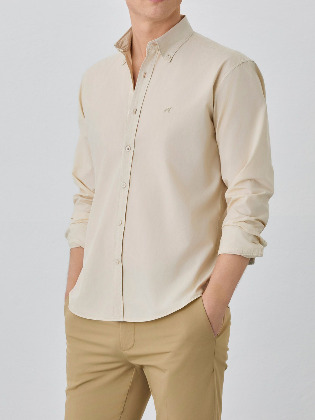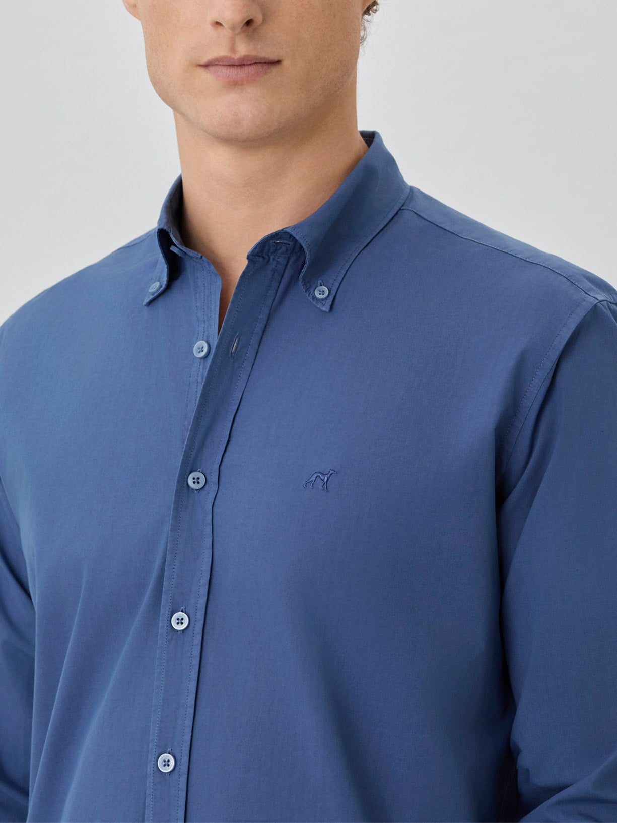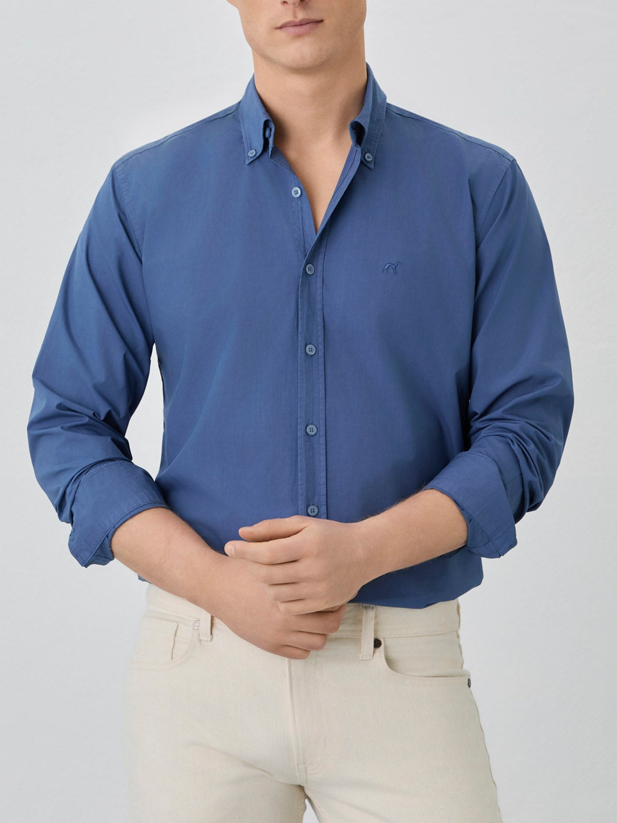 Regular Fit Shirt With Button Down Collar In Poplin Cotton