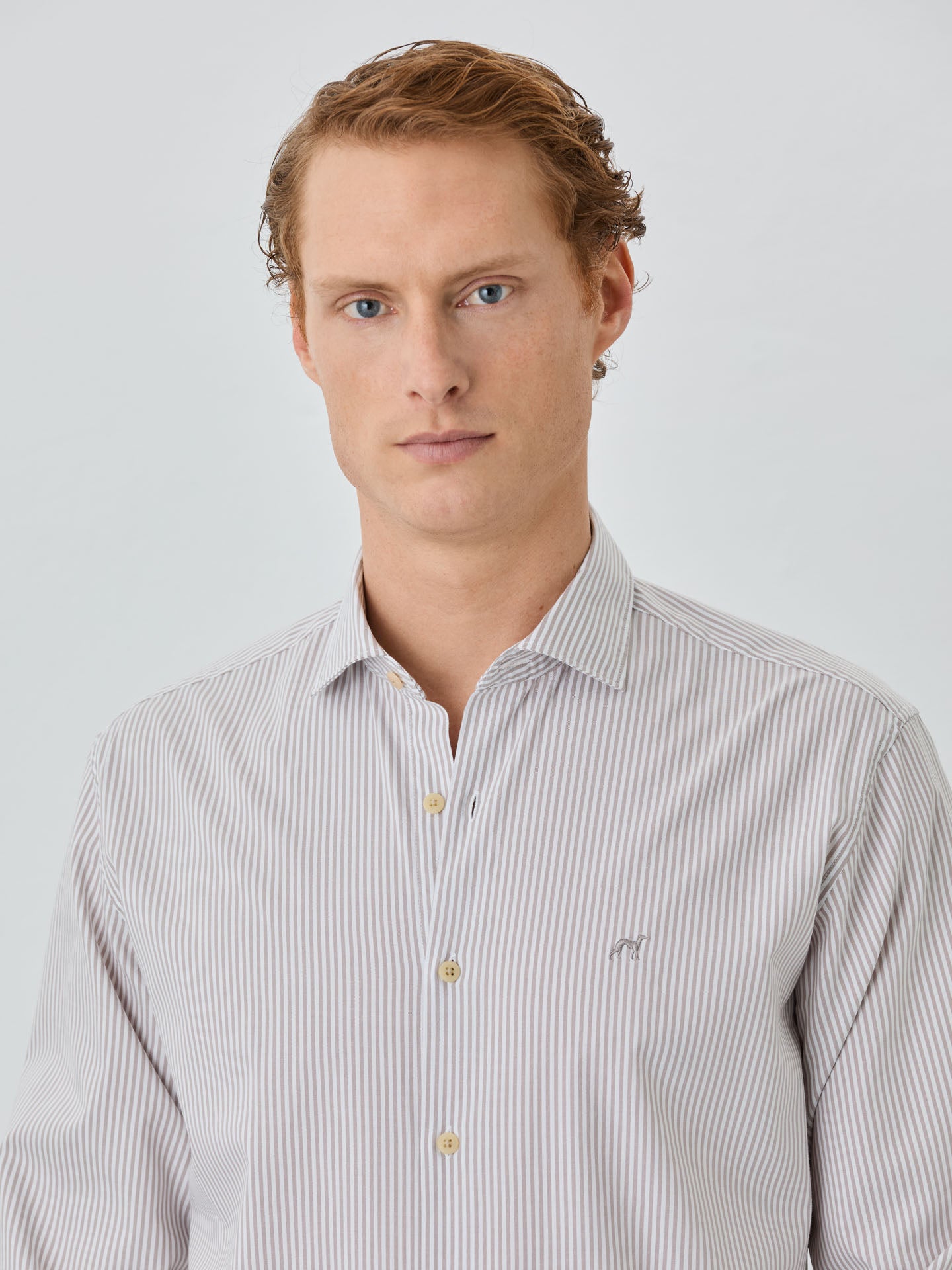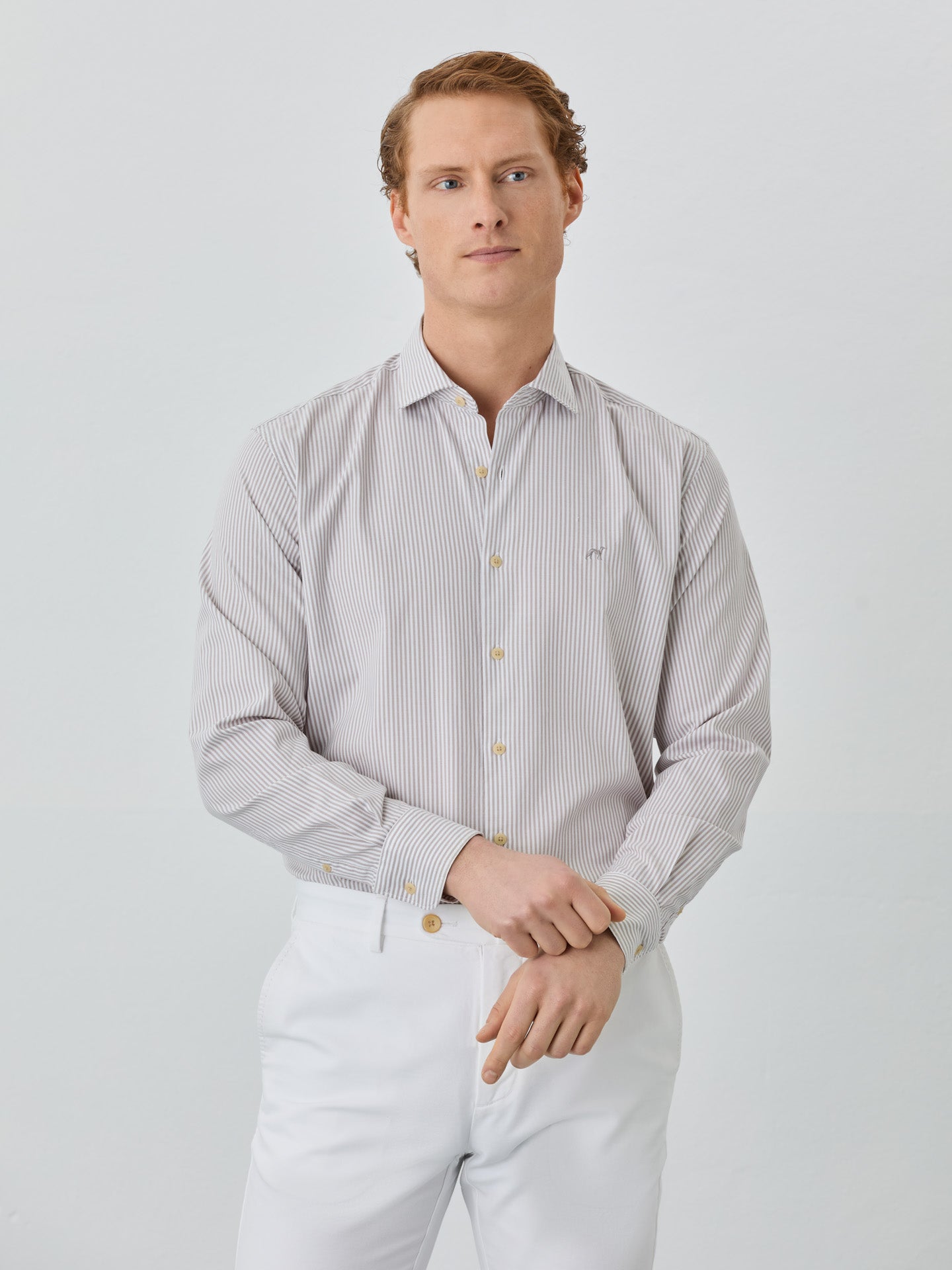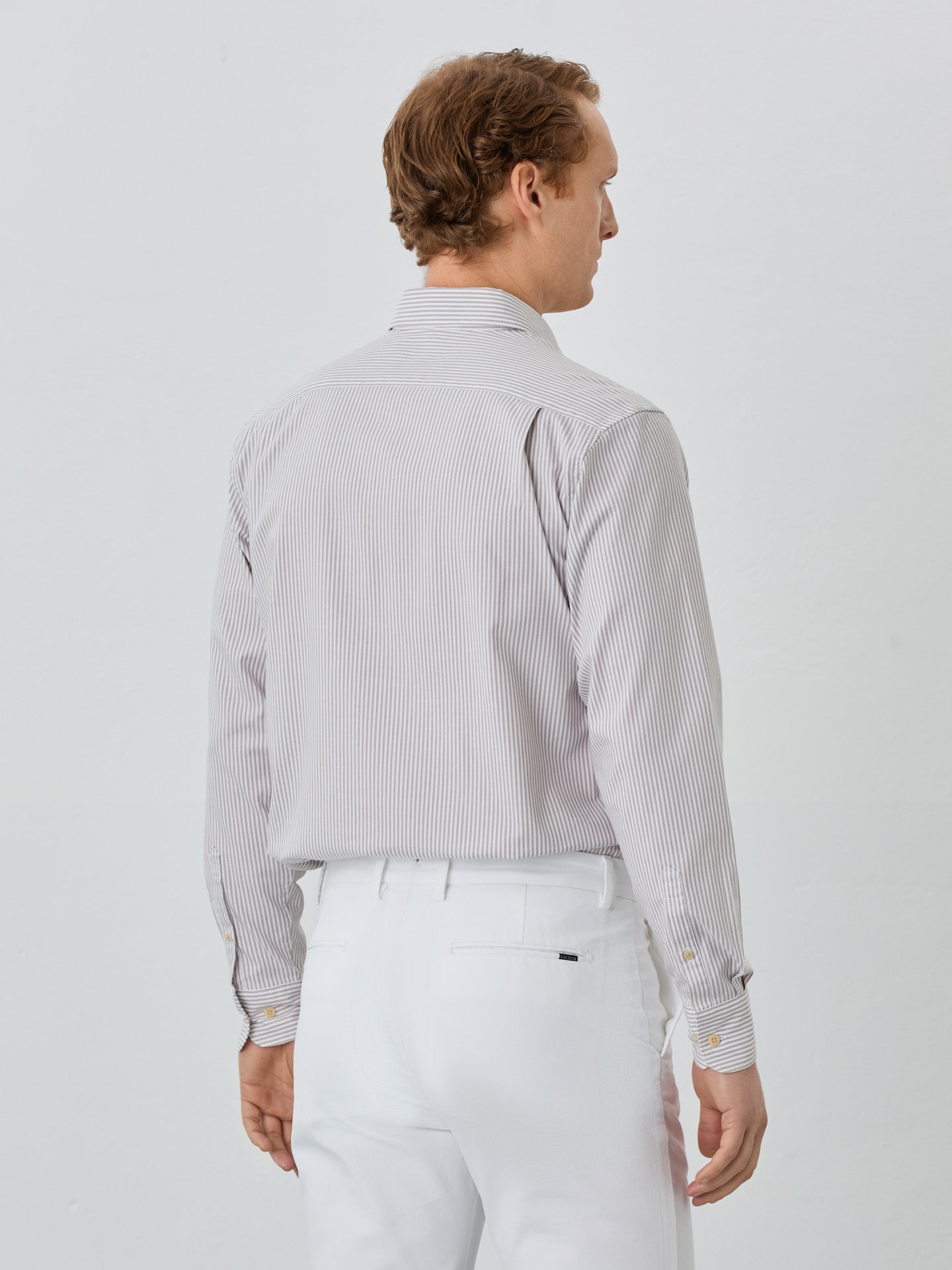 Regular Fit Shirt With Open Collar In BCI Cotton With Stripes