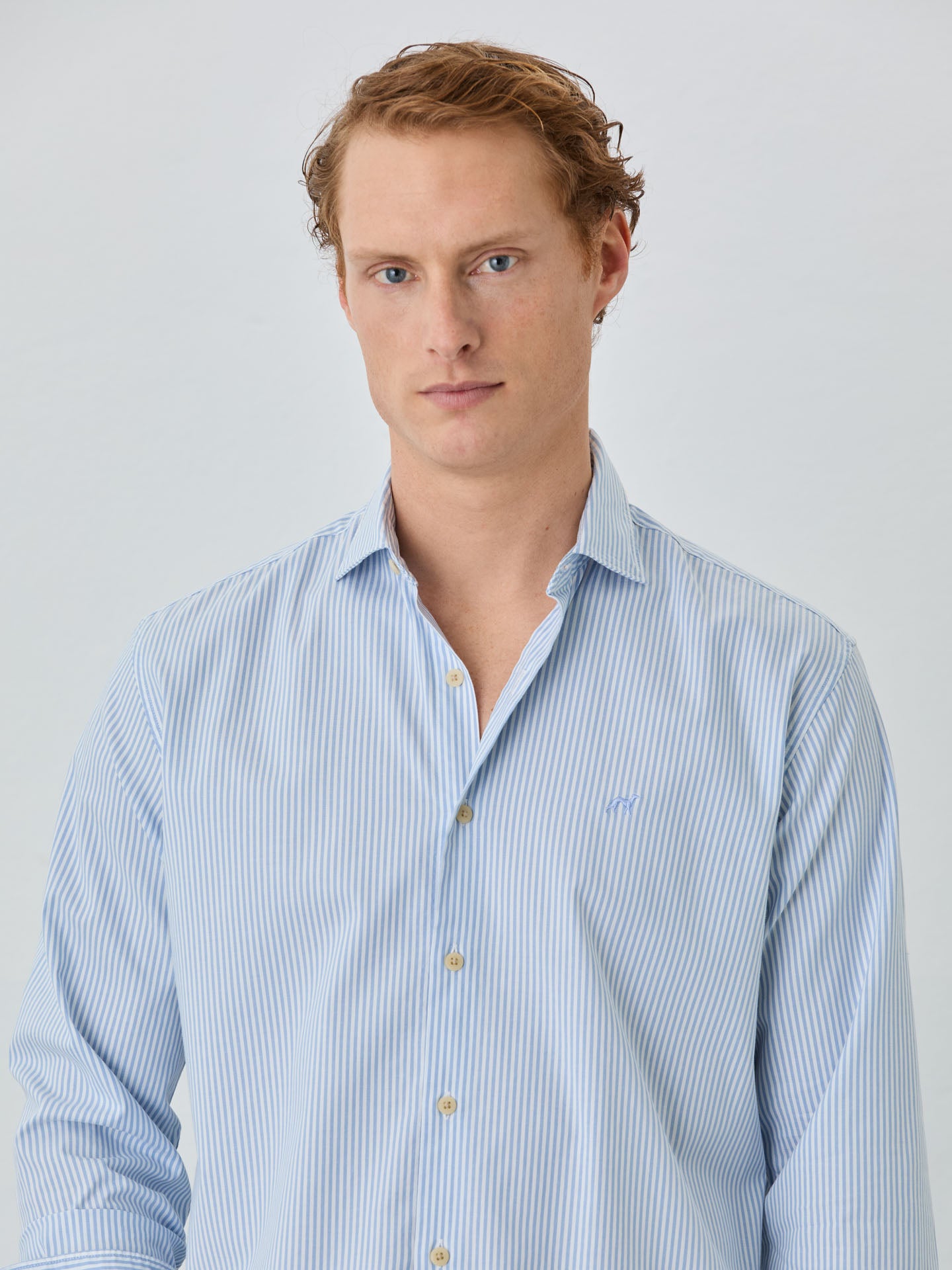 Regular Fit Shirt With Open Collar In BCI Cotton With Stripes
