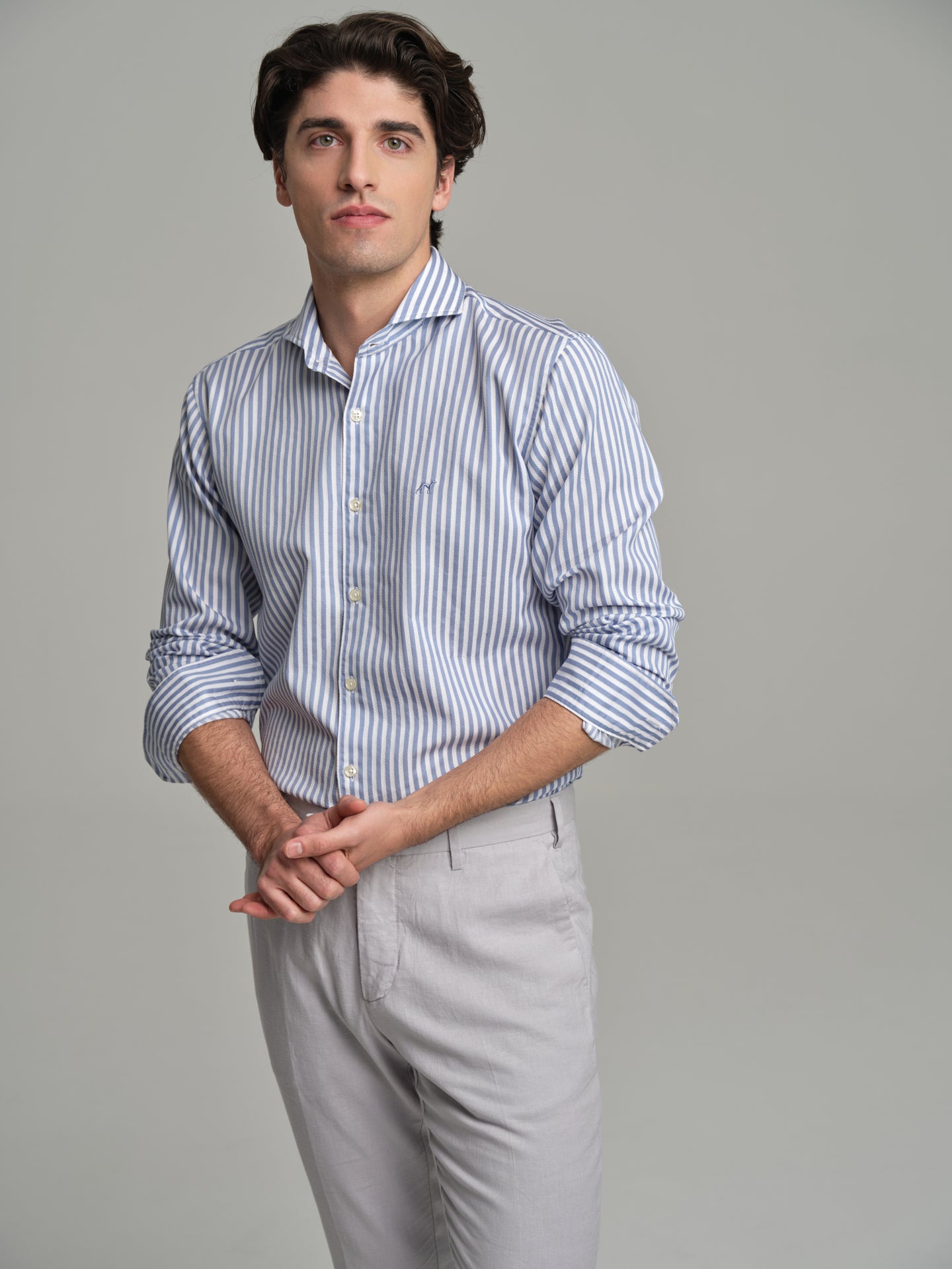 Slim fit casual striped piquet structure shirt