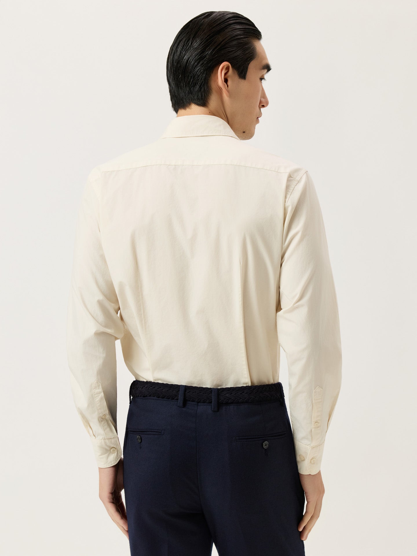 Slim Fit Overdye Poplin Shirt With Open Collar