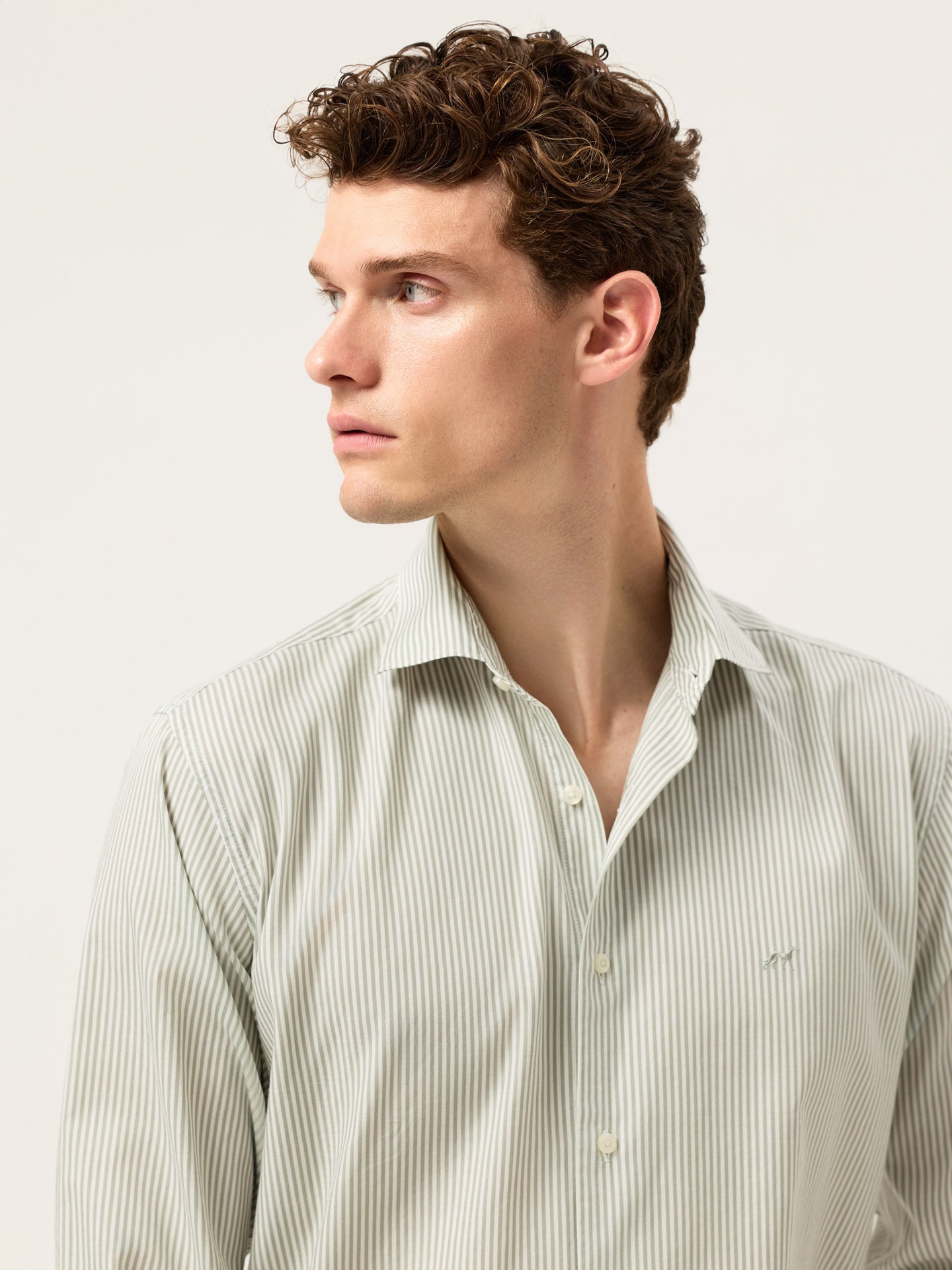 Slim Fit Pyrus Striped Shirt With Soft Satin Finish