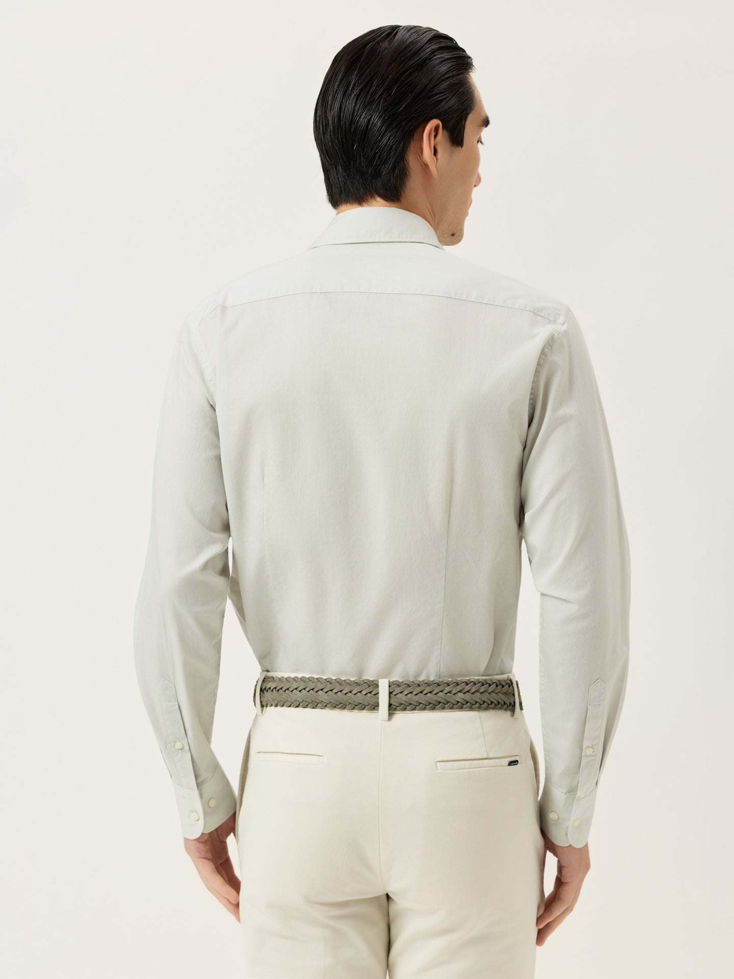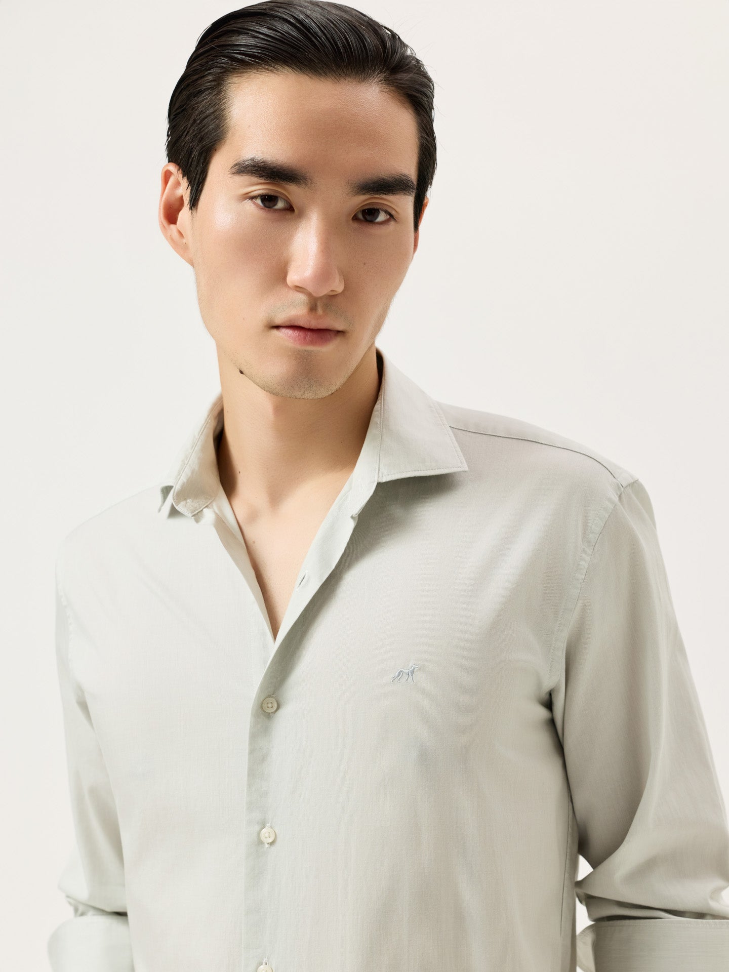 Introducing the Pyrus Stripes Shirt—crafted from 100% BCI cotton in a soft satin weave, this shirt offers a luxurious feel with fine vertical stripes for a casual look. The slim fit ensures a refined silhouette, while the open collar and front button-up fastening provide casual sophistication. Long sleeves with single cuffs and two buttons add timeless detail. The shirt is finished with a horizontal last buttonhole in matching thread, a side patch in self-fabric, and a chest logo embroidery. Off-white buttons and collar stays complete the premium construction. Available in regular fit sizes starting from size XXL. This shirt is a wardrobe essential for those who seek understated sophistication and timeless versatility, seamlessly blending comfort and style for any casual occasion.