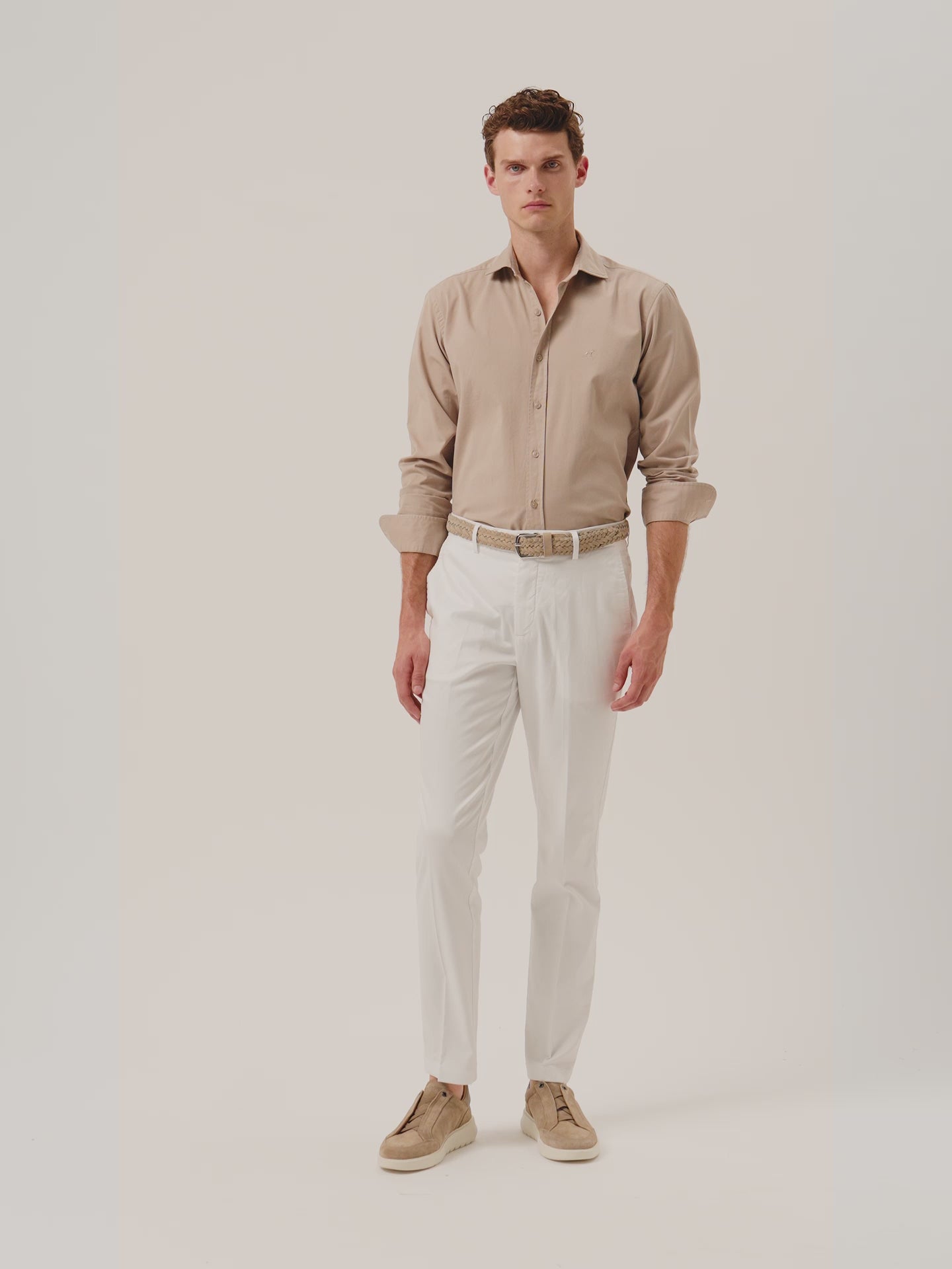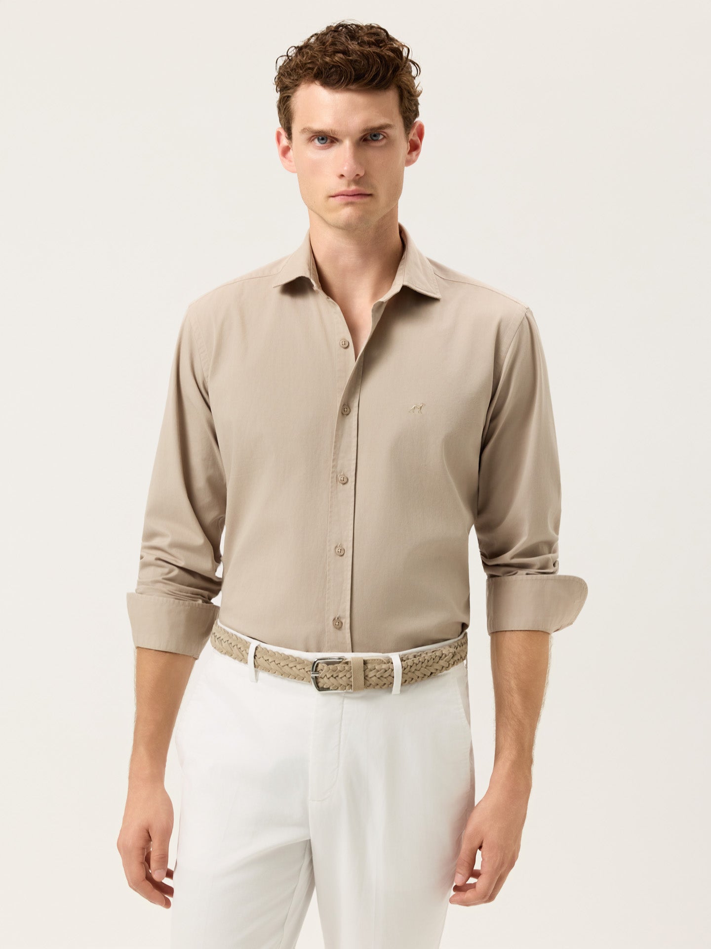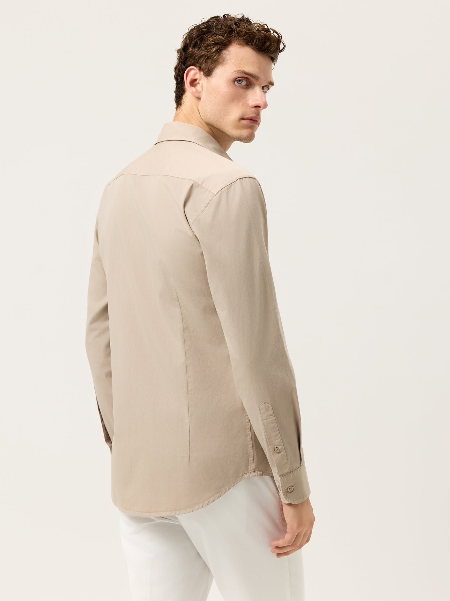 Slim Fit Soft Cotton Twill Shirt With Garment-Dyed Finish