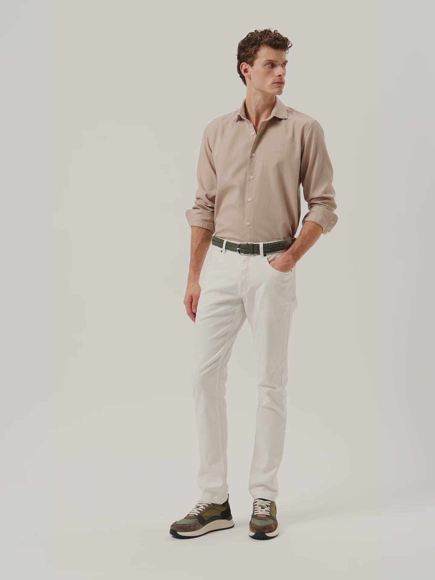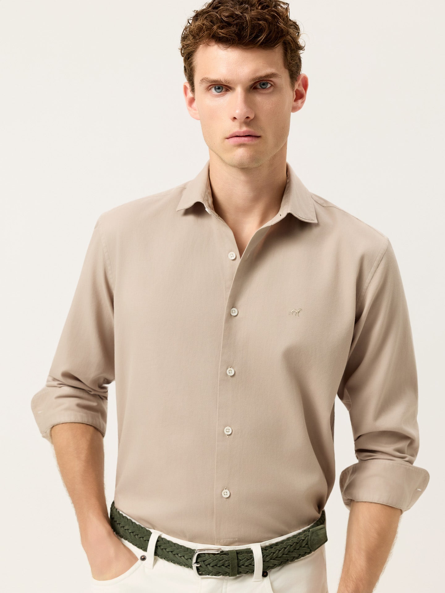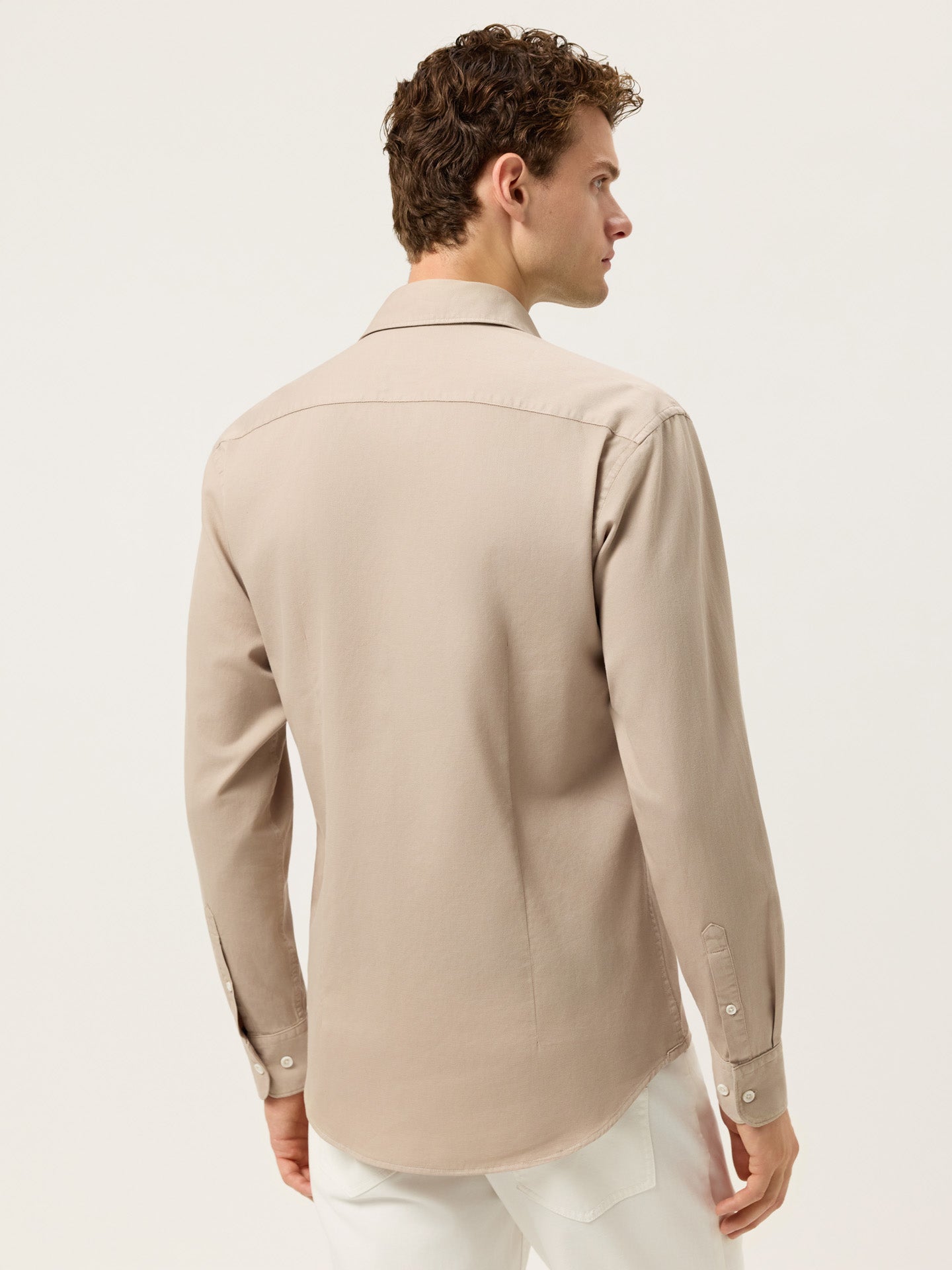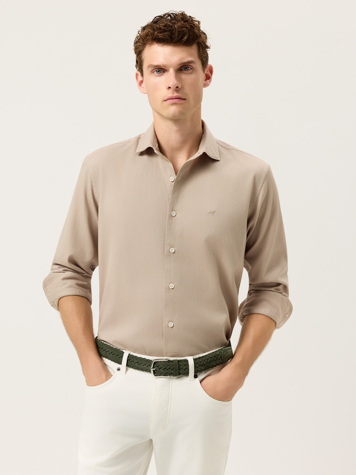 Slim Fit Structured Cotton Shirt With Garment-Dyed Finish