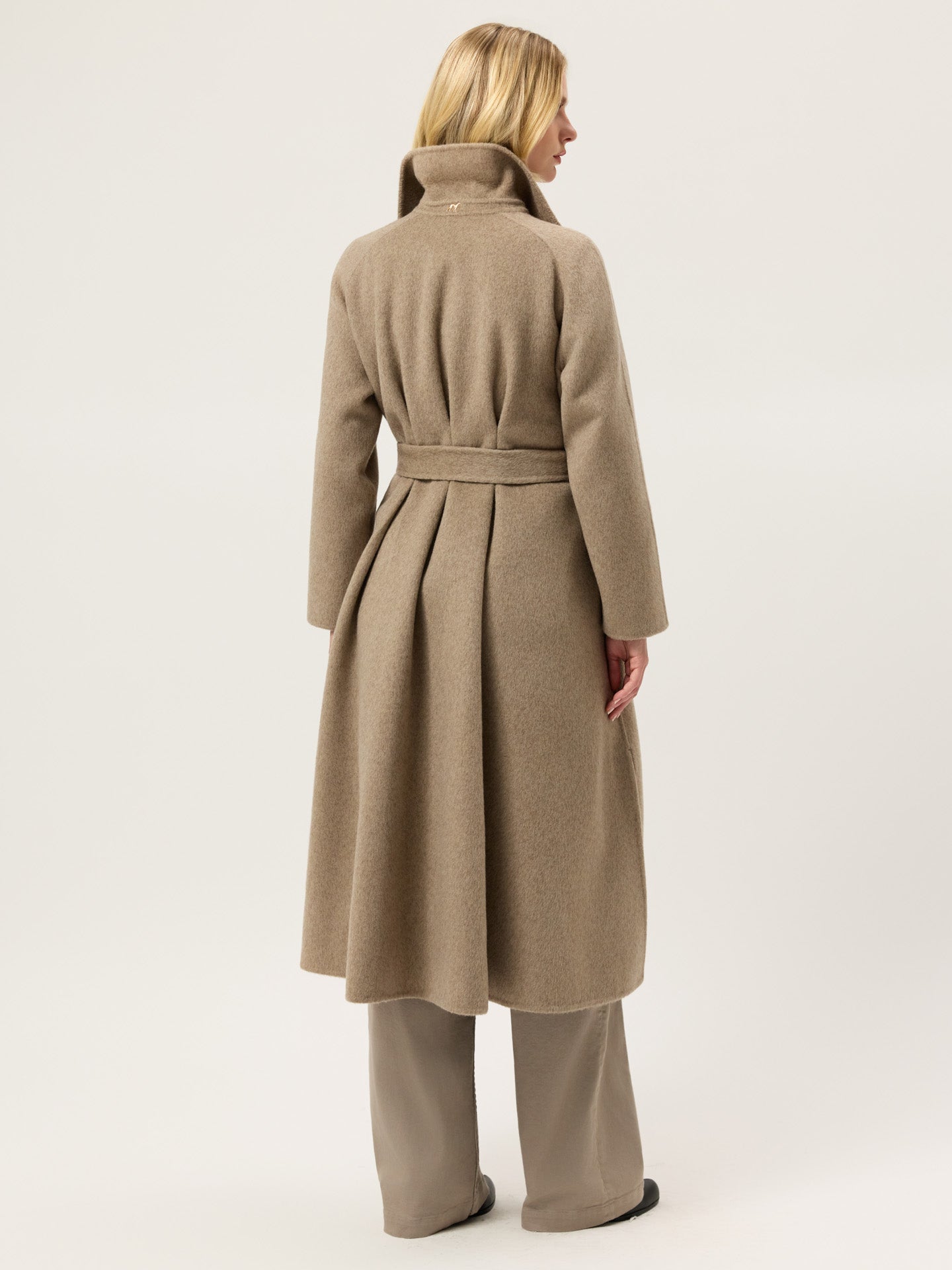 Handmade Overcoat In Wool and Tencel Blend With Belt