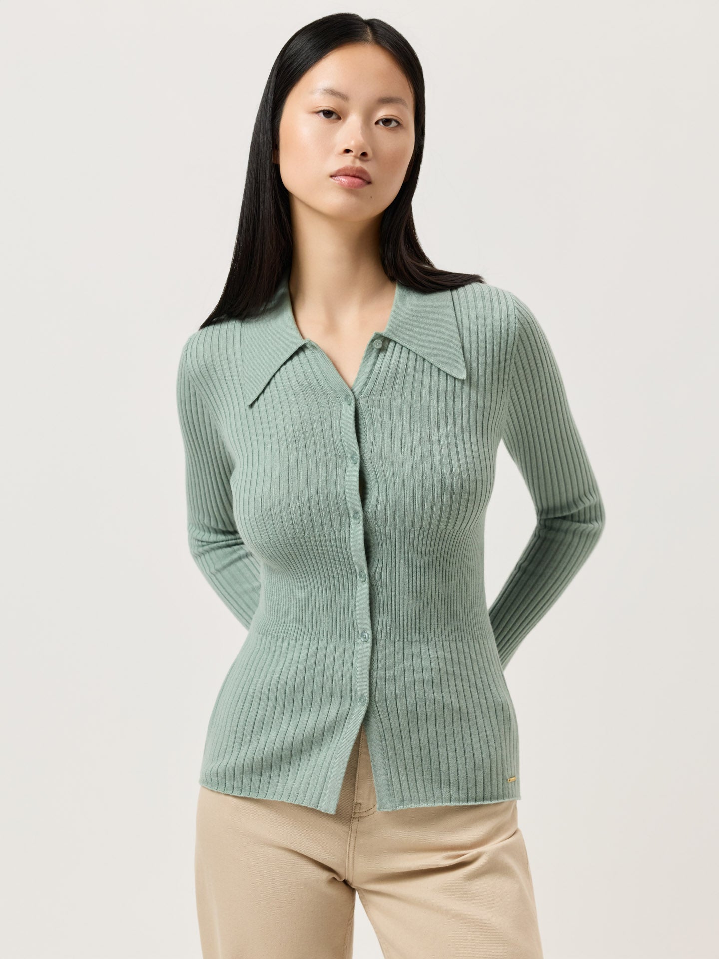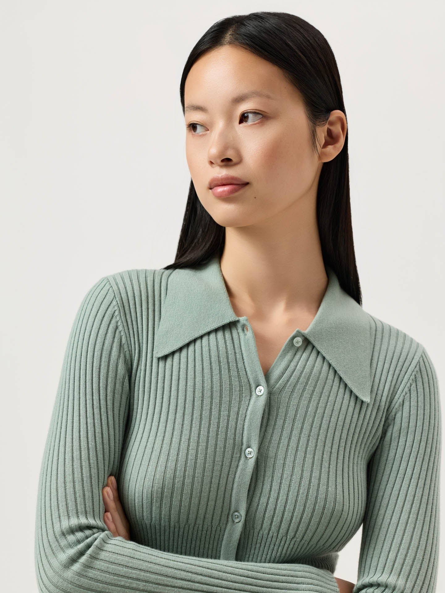 Long-Sleeve Polo Sweater With Big Collar In Extra Fine Merino Wool