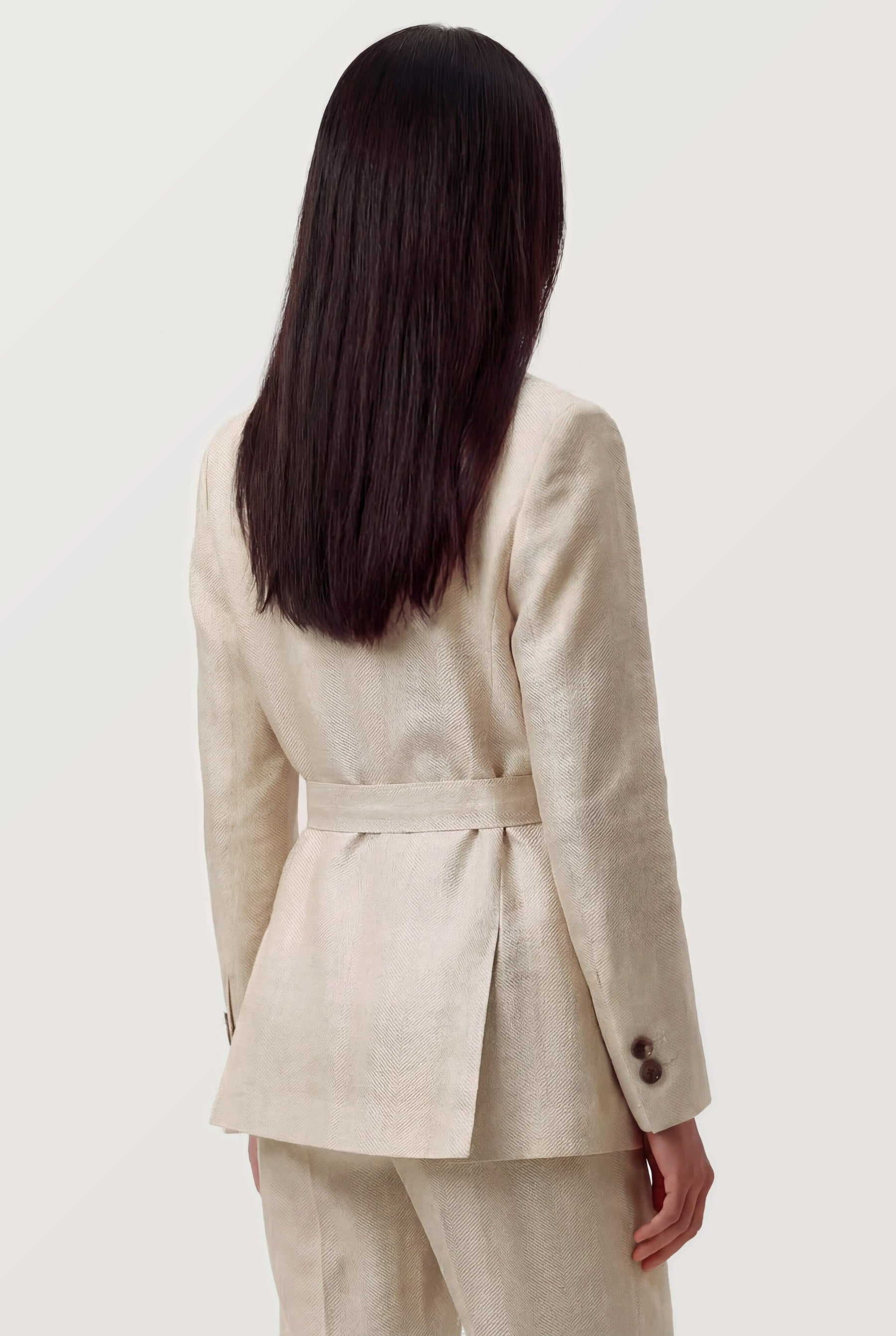 Regular Fit Belted Blazer In Viscose And Linen Blend