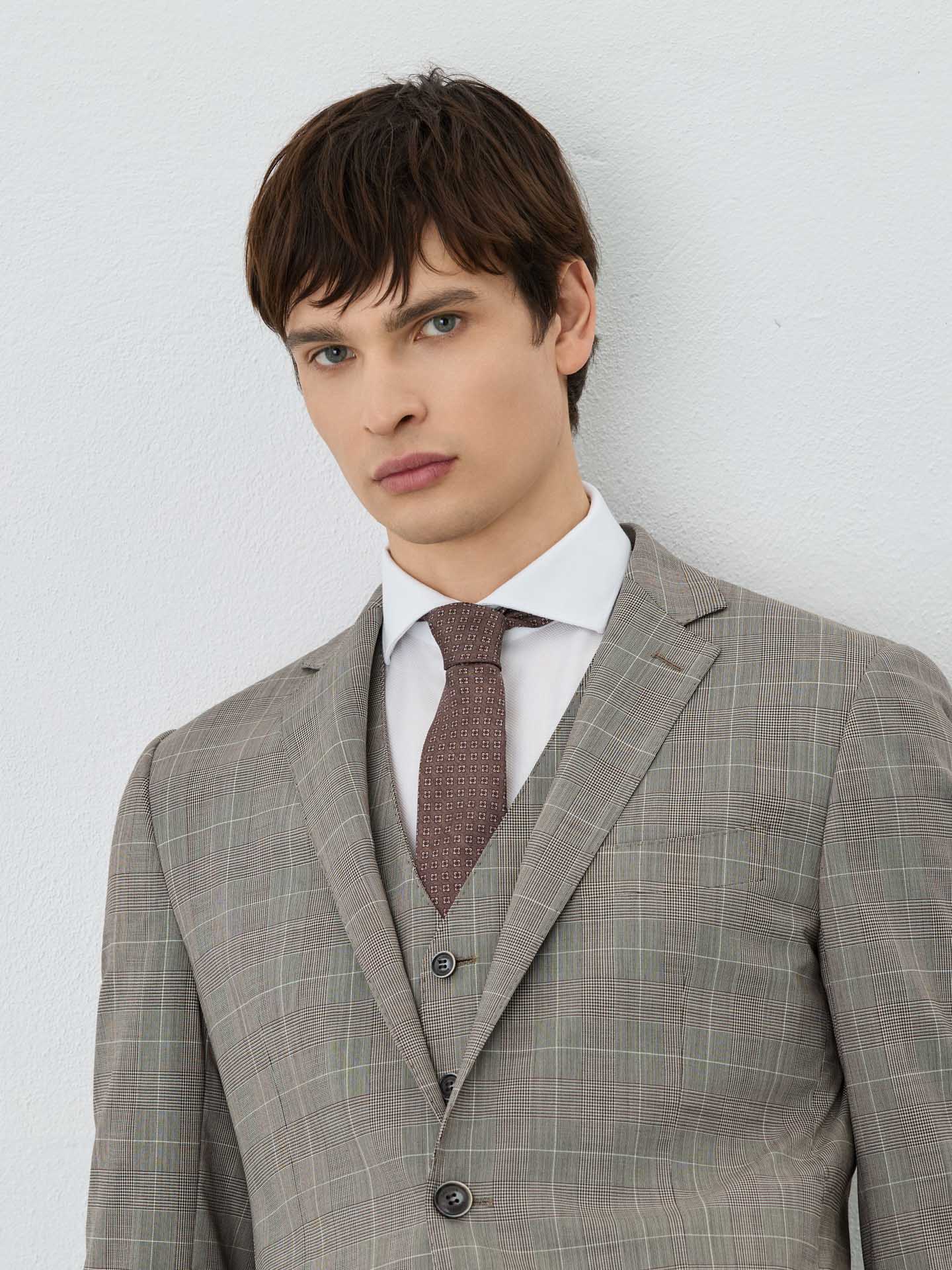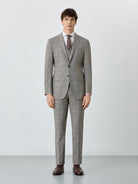 Slim Fit Prince Of Wales 3 Pieces Suit In Wool-elastane Blend
