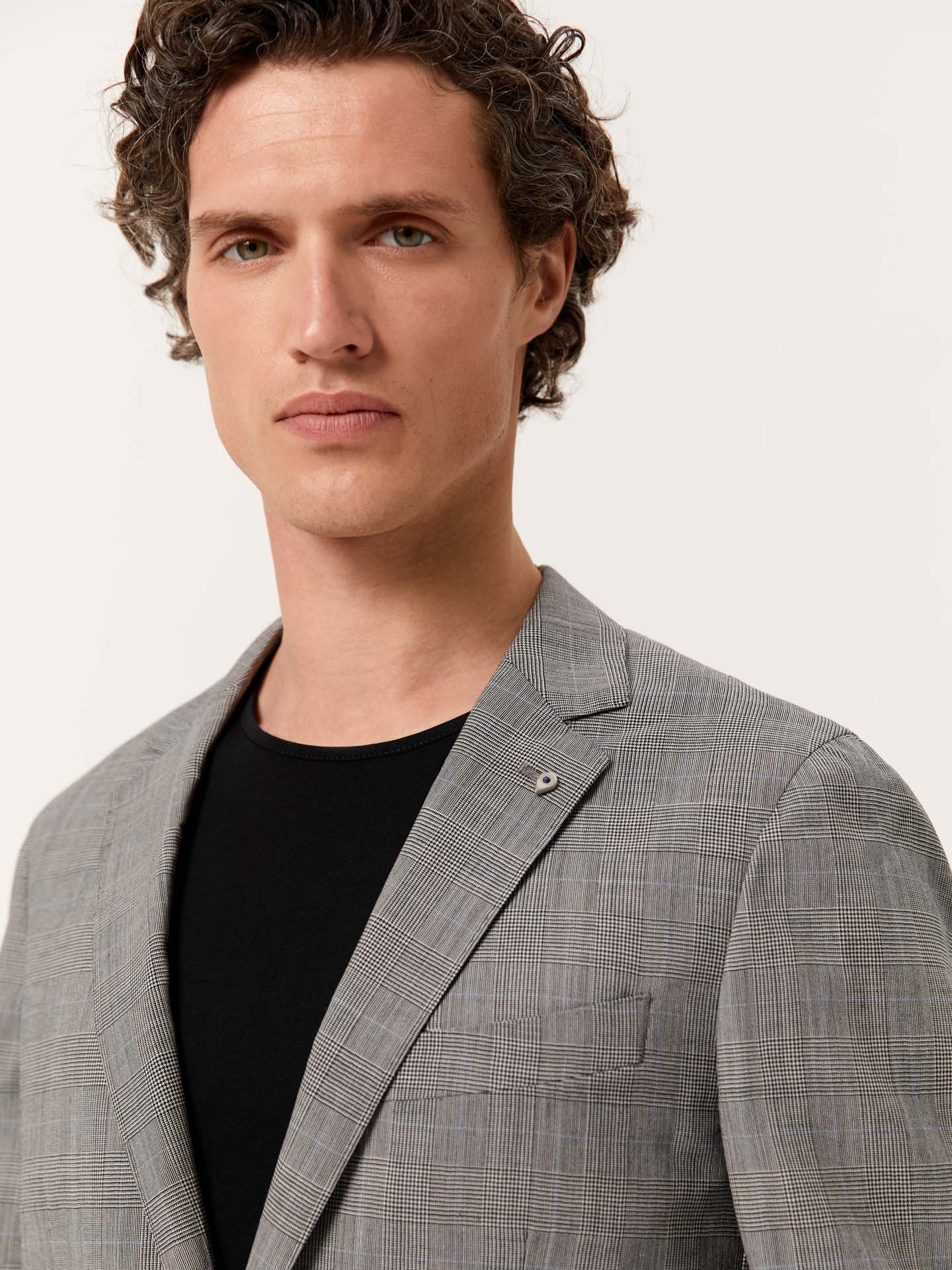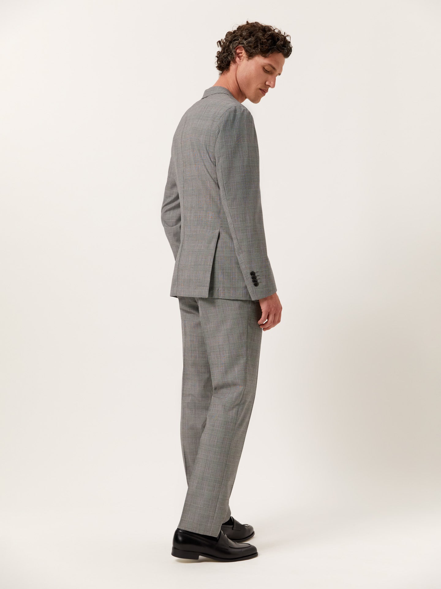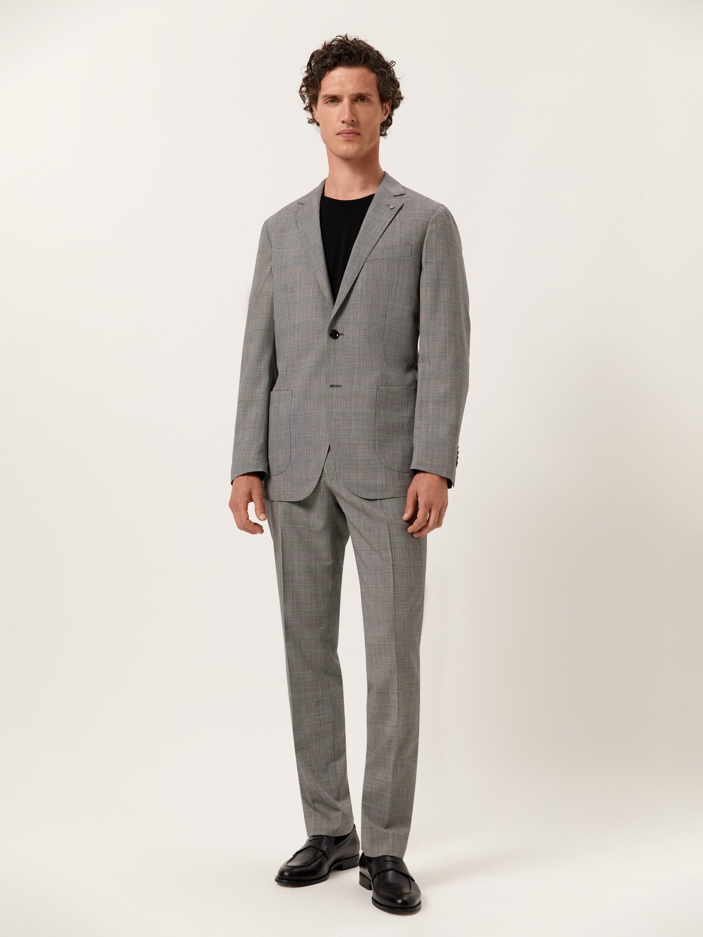 Expertly tailored from 100% wool with a sophisticated Prince of Wales pattern, this slim-fit two-piece suit is crafted for those who prefer a refined, sharp silhouette. Balancing elegance with modern sophistication, its sleek design ensures a sharp, polished look. Fully unlined, it allows for effortless layering and natural movement throughout the day. The blazer features a classic two-button closure, notch lapels, and practical patch pockets, complemented by four-button cuffs and two back slits for enhanced movement. Thoughtfully designed front and interior pockets provide functional storage without compromising style. The trousers are impeccably crafted with a zip fly, and a extended button waistband fastening, two side pockets with a discreet coin pocket, two back welt pockets, and belt loops for added versatility. All suits follow regular fitting measurements from sizes 56 to 62.