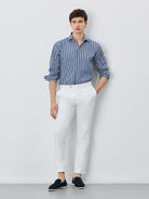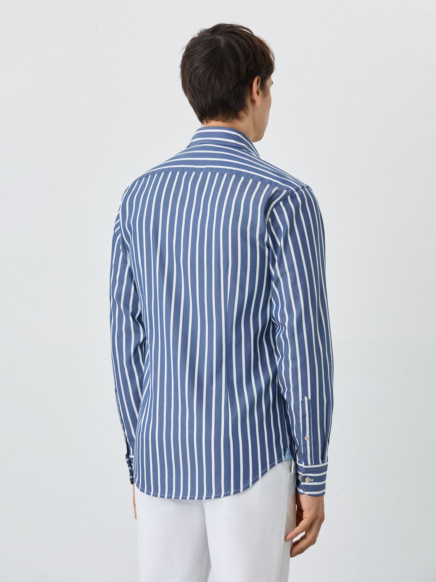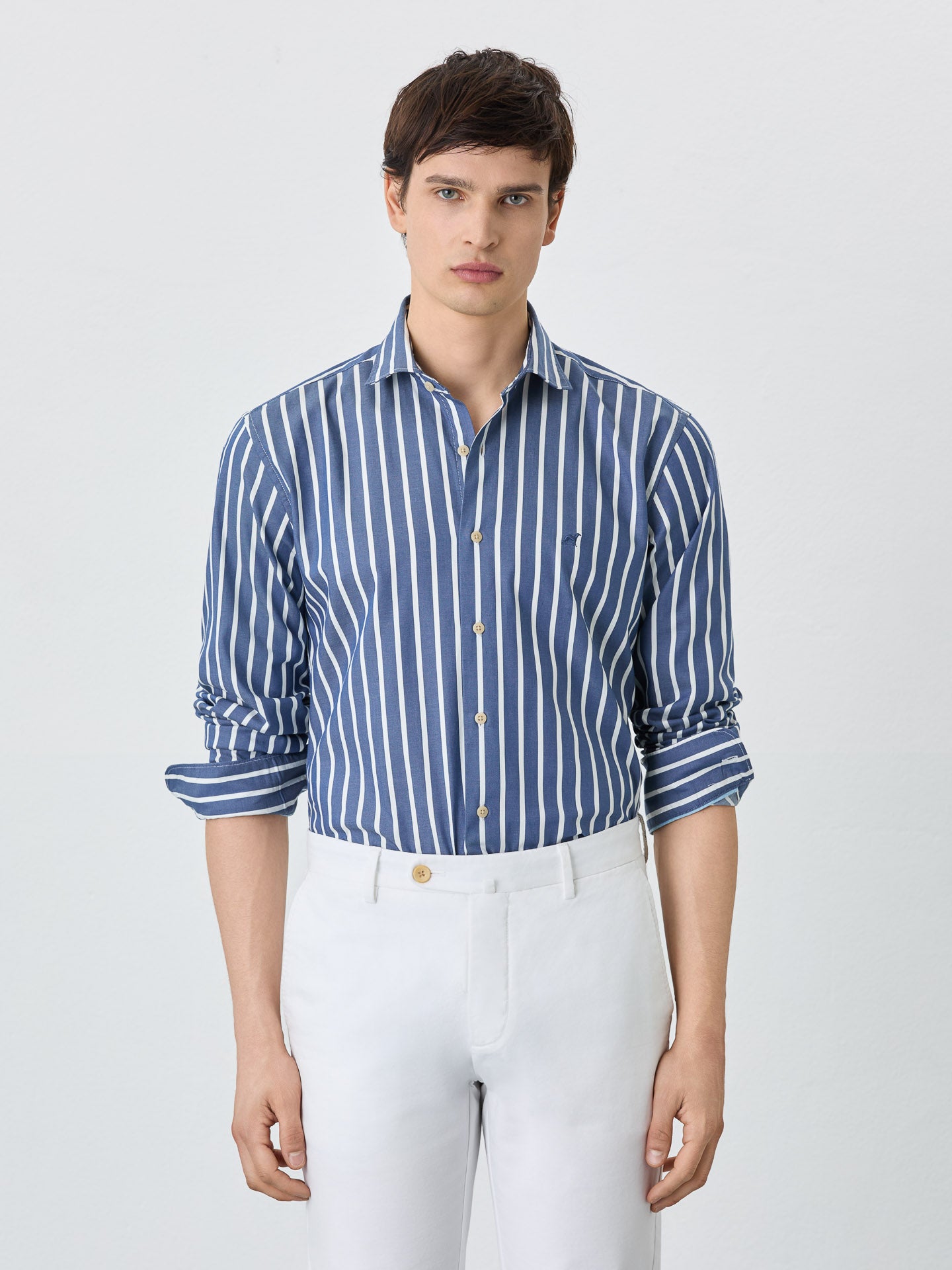 Slim Fit Shirt With Open Collar In BCI Cotton With Stripes
