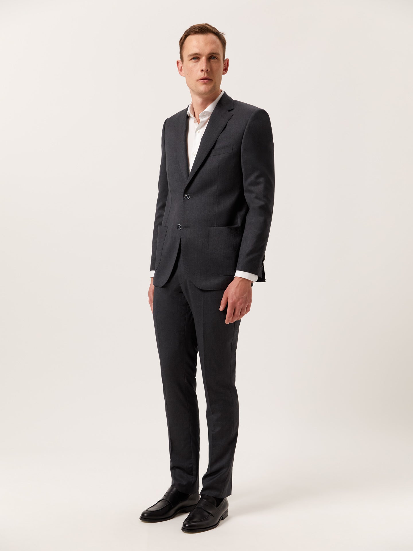 The men's suits from Sacoor Brothers are available with 'Drop 5' and 'Drop 6'. This designation refers to the difference between the blazer size and the trouser size. When ordering a size 46 with 'Drop 5', the trousers will be around size 41, while 'Drop 6' will result in trousers of size 40.