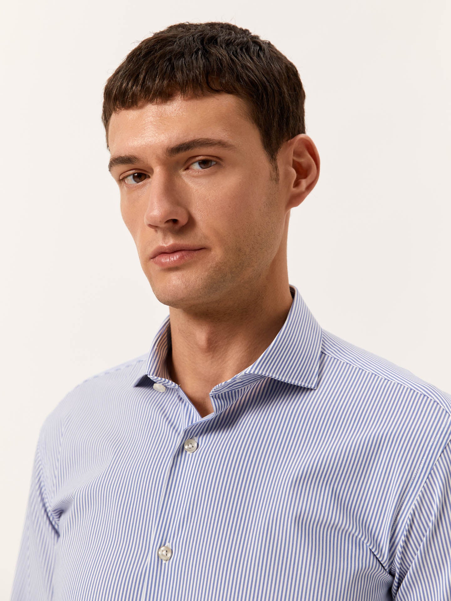 Slim Fit Travel Striped Poplin Shirt in Comfort Cotton