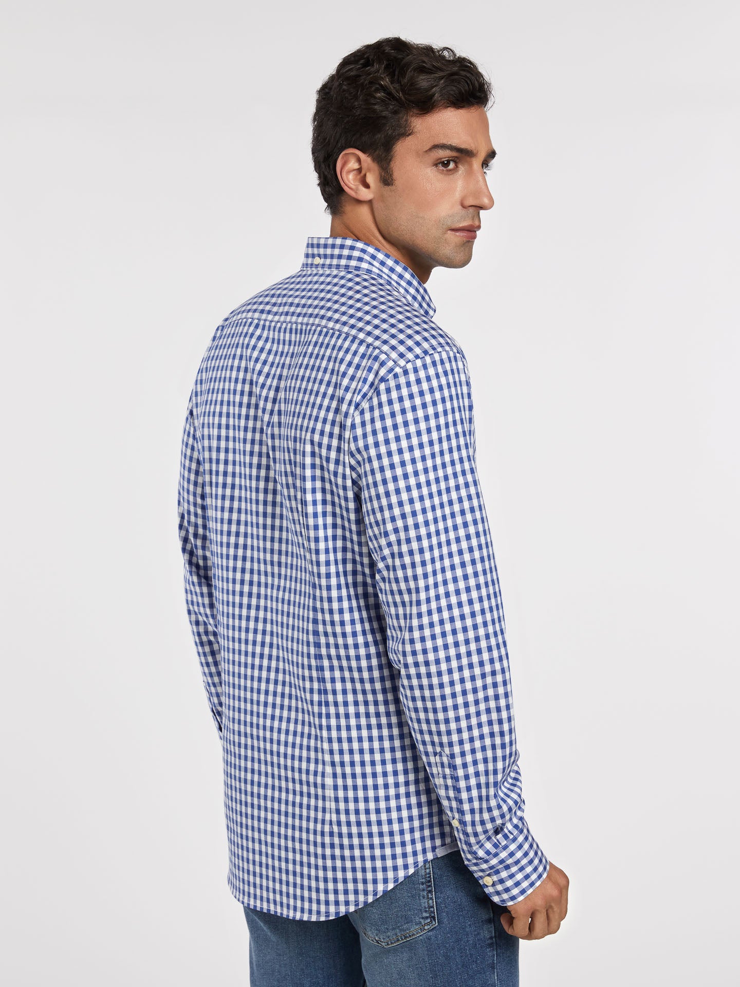 'Respekt' sport shirt made of 100% BCI cotton oxford checks. Featuring slim fit, button-down collar and front button-up fastening. Long sleeves with single cuffs with 2 buttons. Chest logo embroidery. 'Better Cotton Initiative' - this garment is made with the most ecological cotton: it's production sustains the health of soils, ecosystems and people by using natural processes rather than artificial inputs.