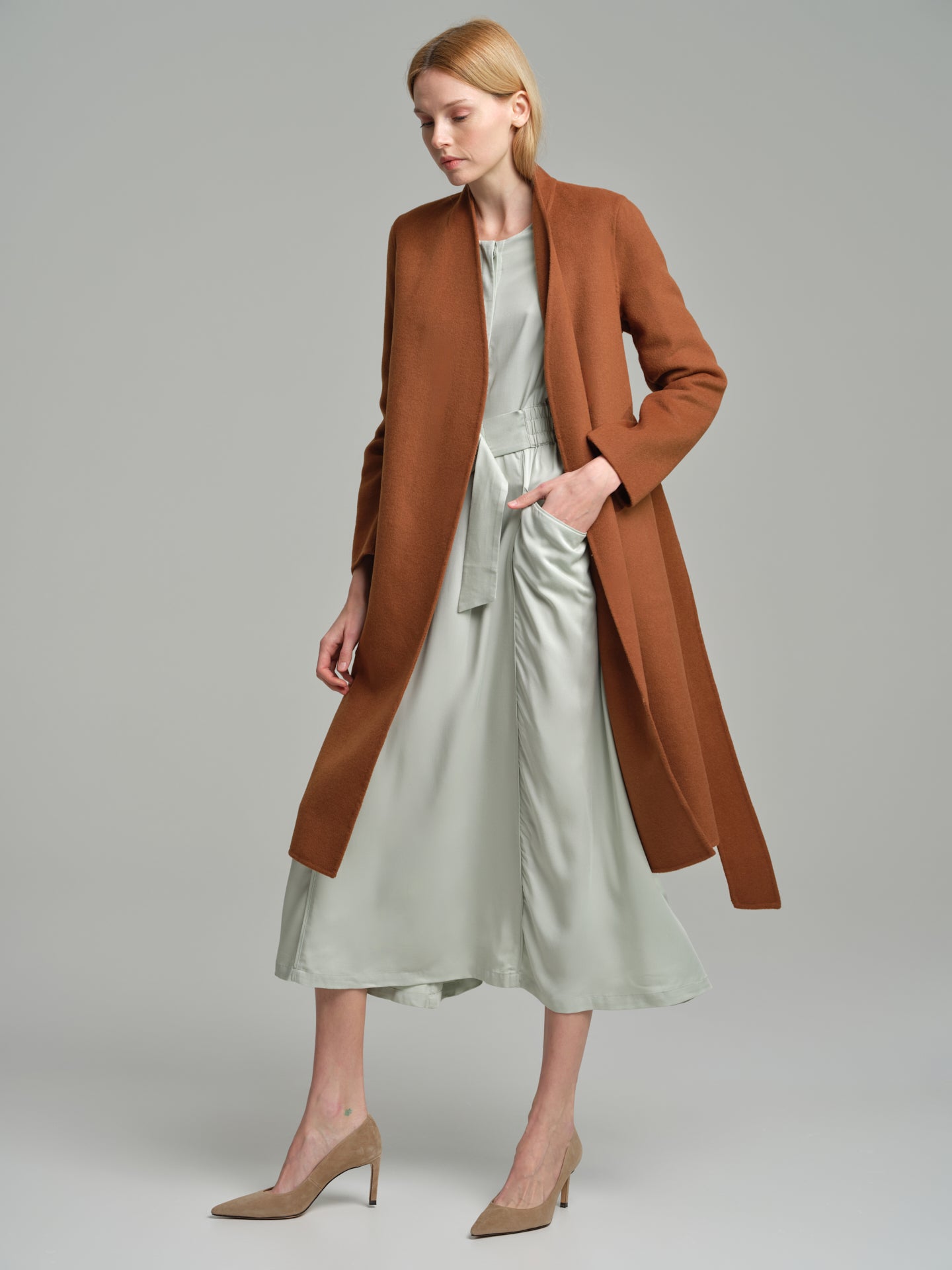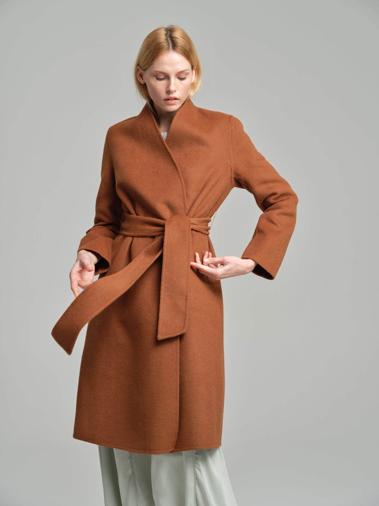 Handmade belted wool coat
