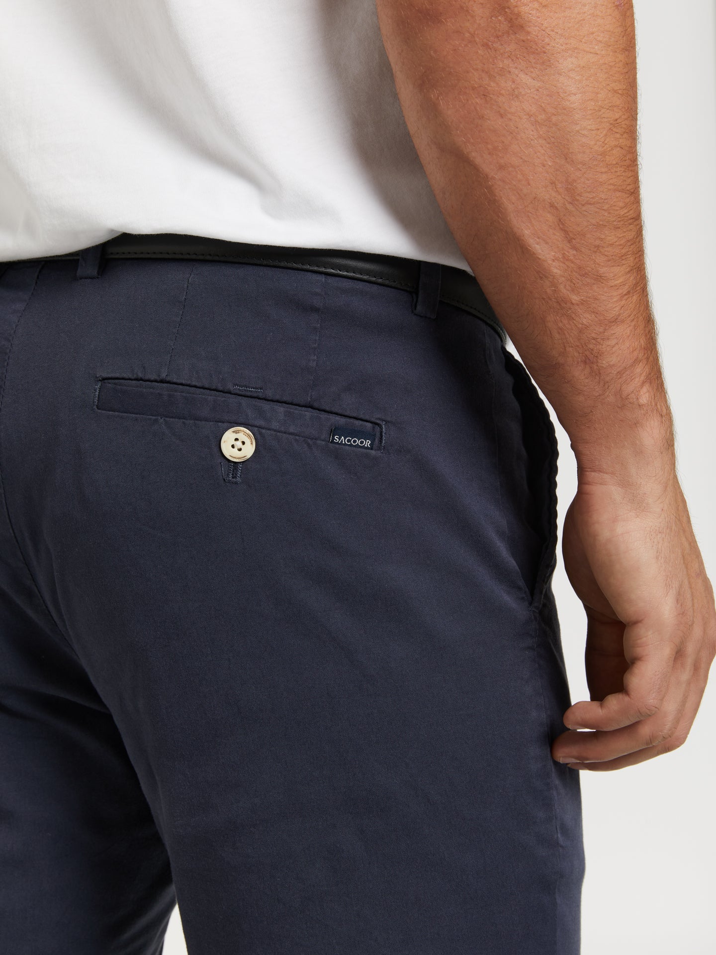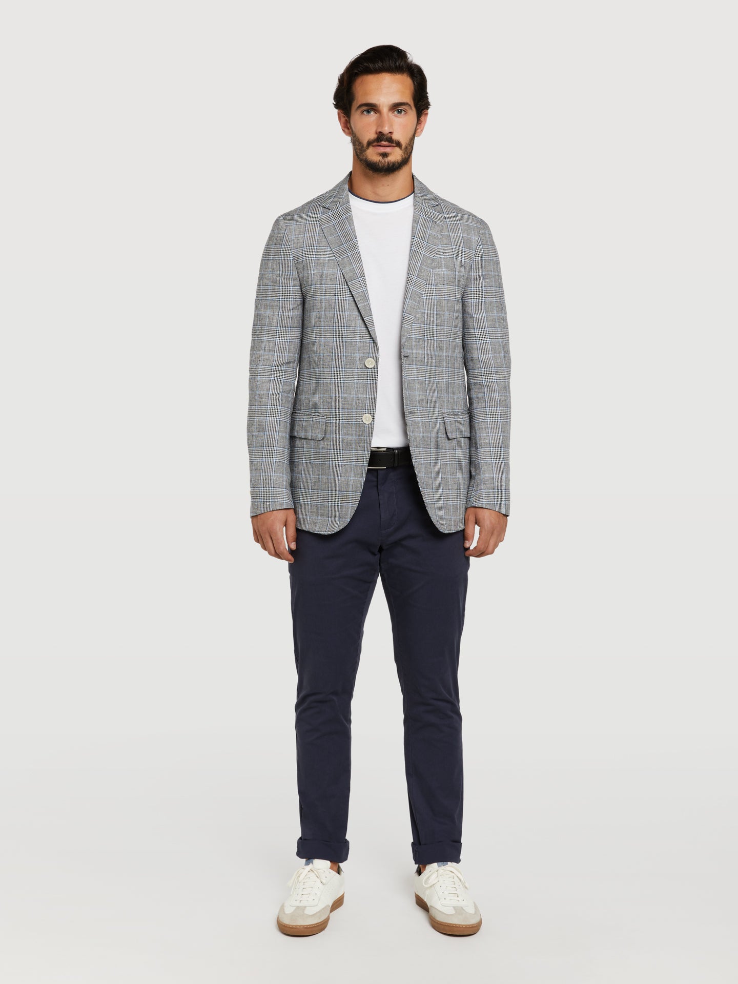 The men's suits from Sacoor Brothers are available with 'Drop 5' and 'Drop 6'. This designation refers to the difference between the blazer size and the trouser size. When ordering a size 46 with 'Drop 5', the trousers will be around size 41, while 'Drop 6' will result in trousers of size 40.