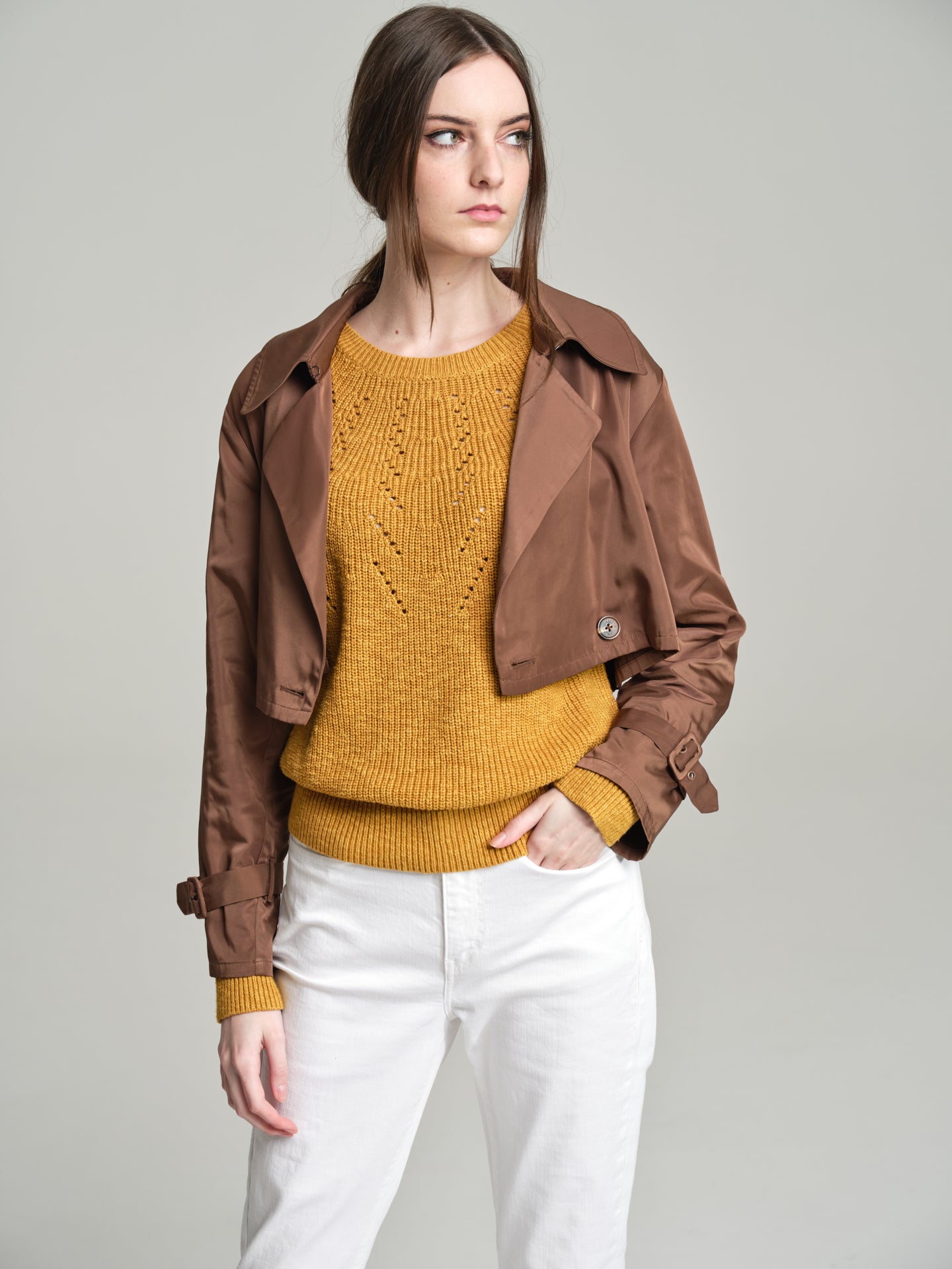 Put the first end of the measuring tape at the base of the back of your neck and measure down your back to the point where you’d want the jacket to be.