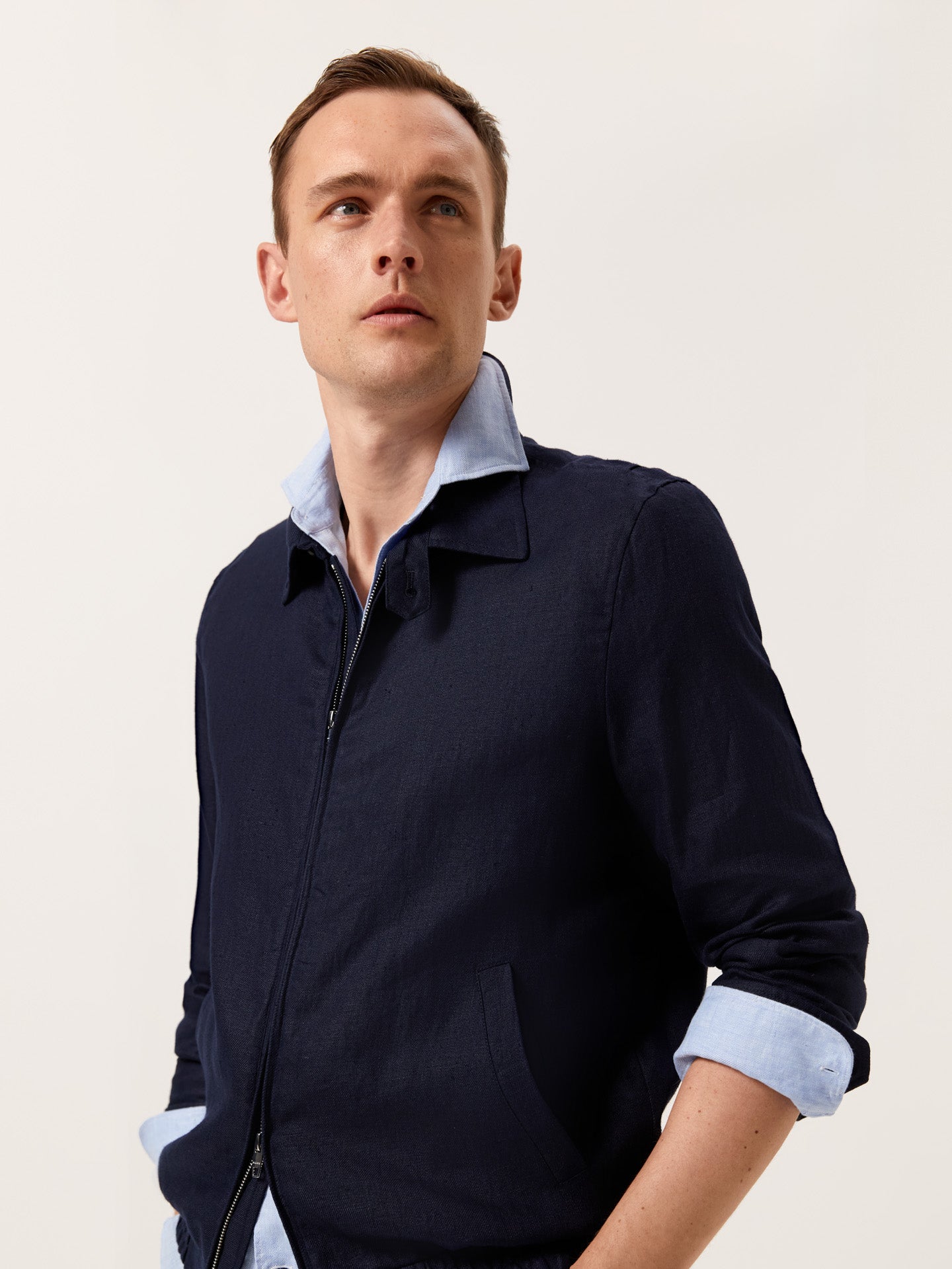 Slim Fit Herringbone Linen Shirt with Newport Collar