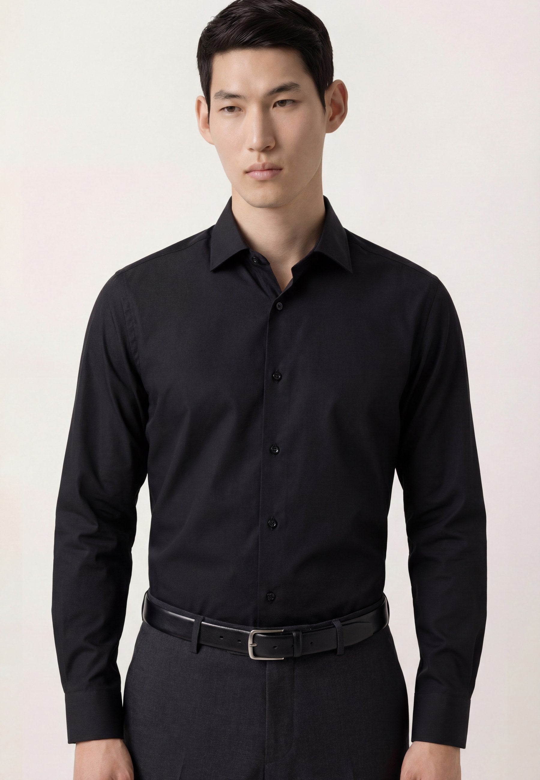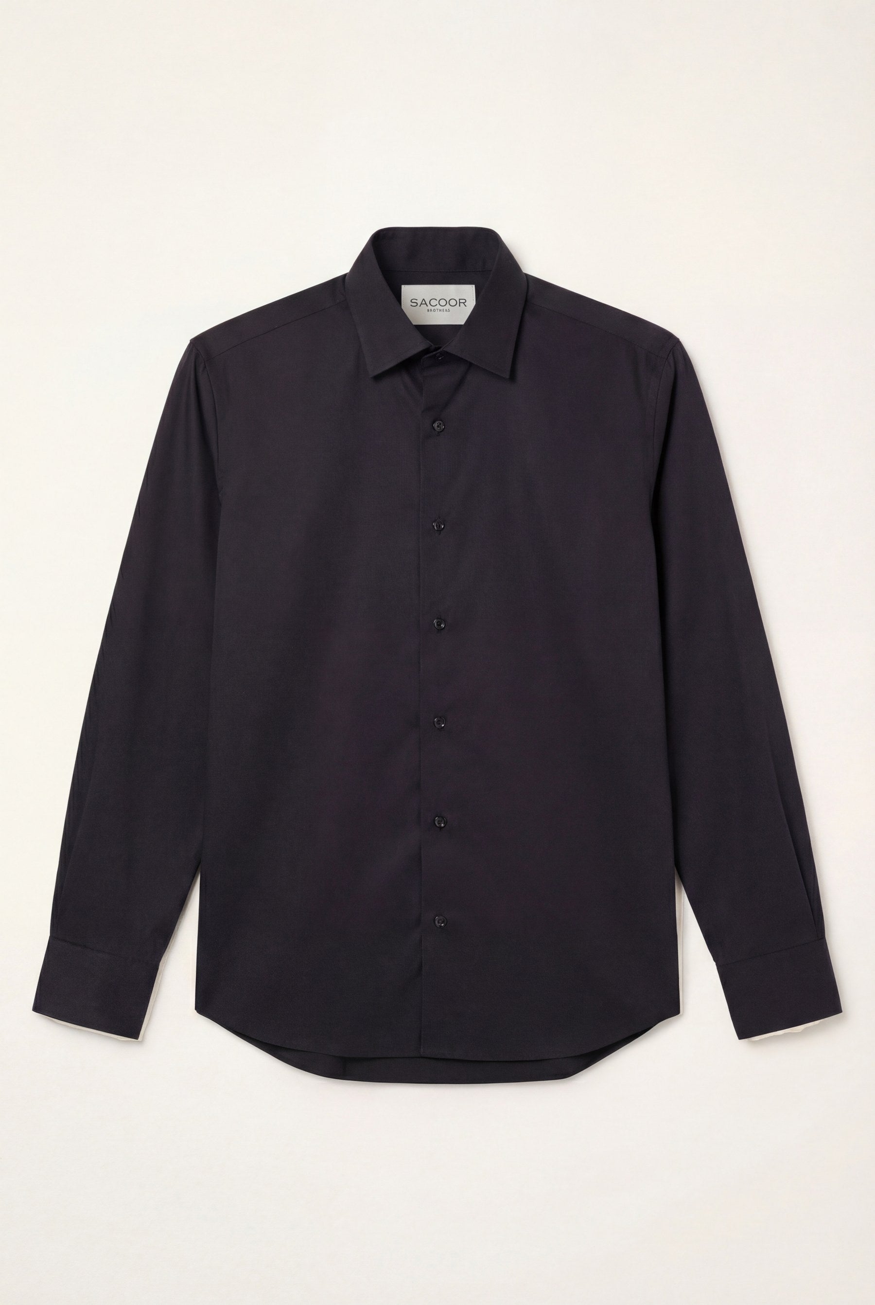 Regular Fit Travel Plain Poplin Luxury Stretch Cotton Shirt with Oxford Collar