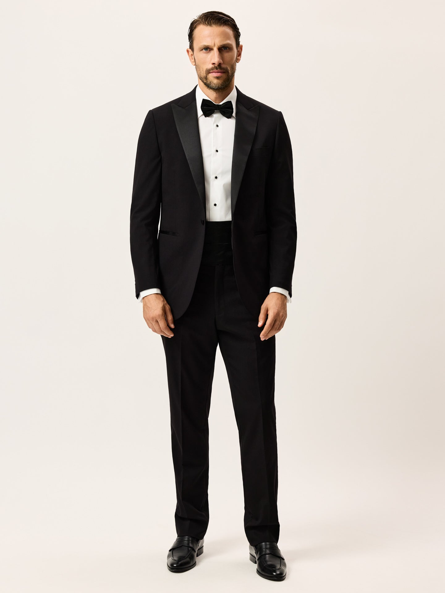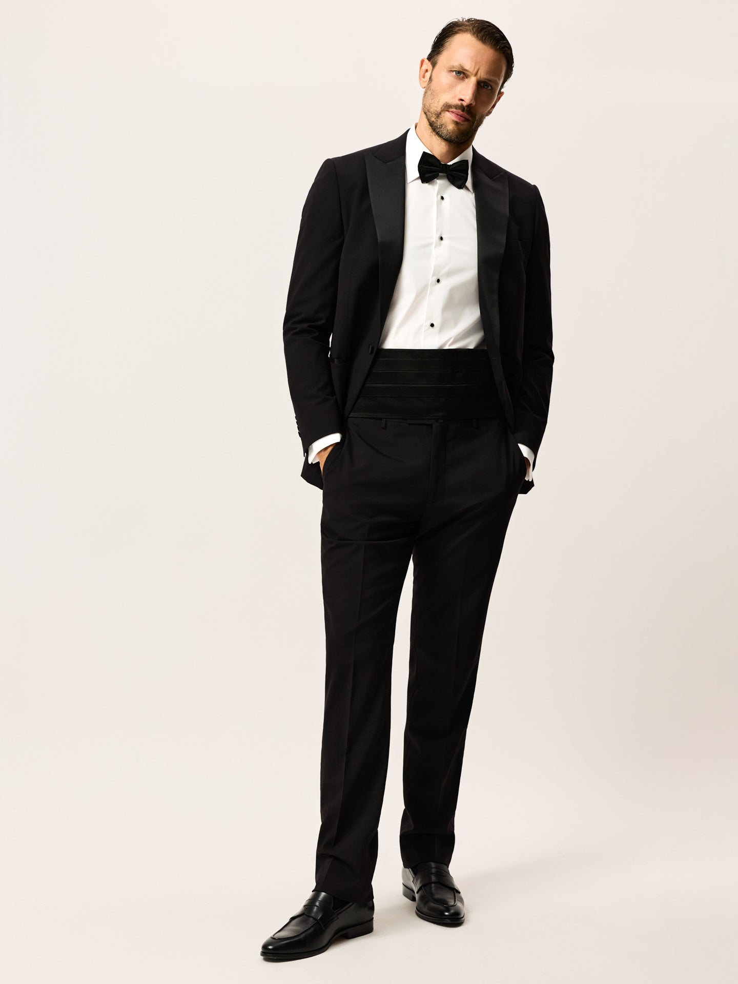 The men's suits from Sacoor Brothers are available with 'Drop 5' and 'Drop 6'. This designation refers to the difference between the blazer size and the trouser size. When ordering a size 46 with 'Drop 5', the trousers will be around size 41, while 'Drop 6' will result in trousers of size 40.