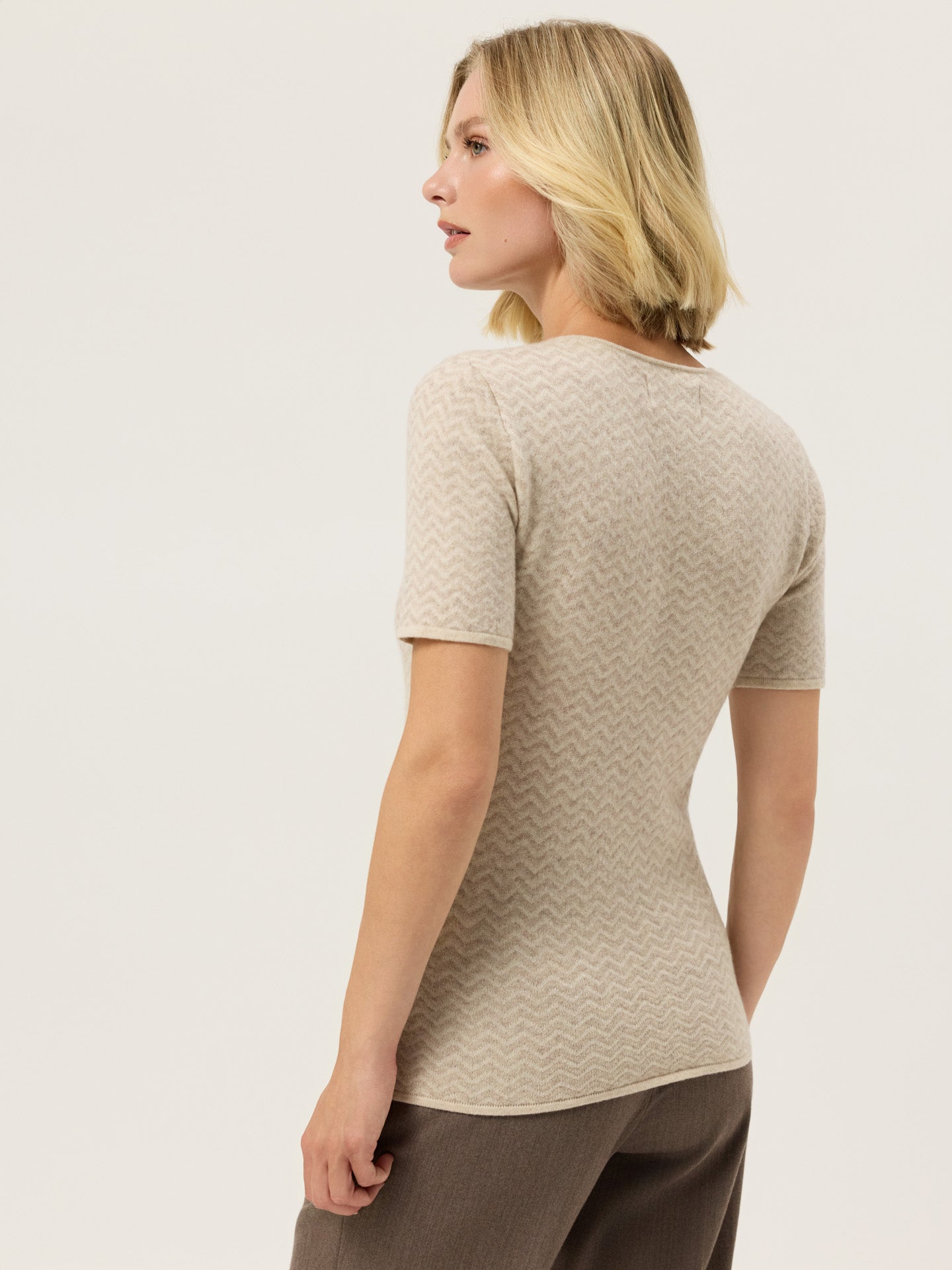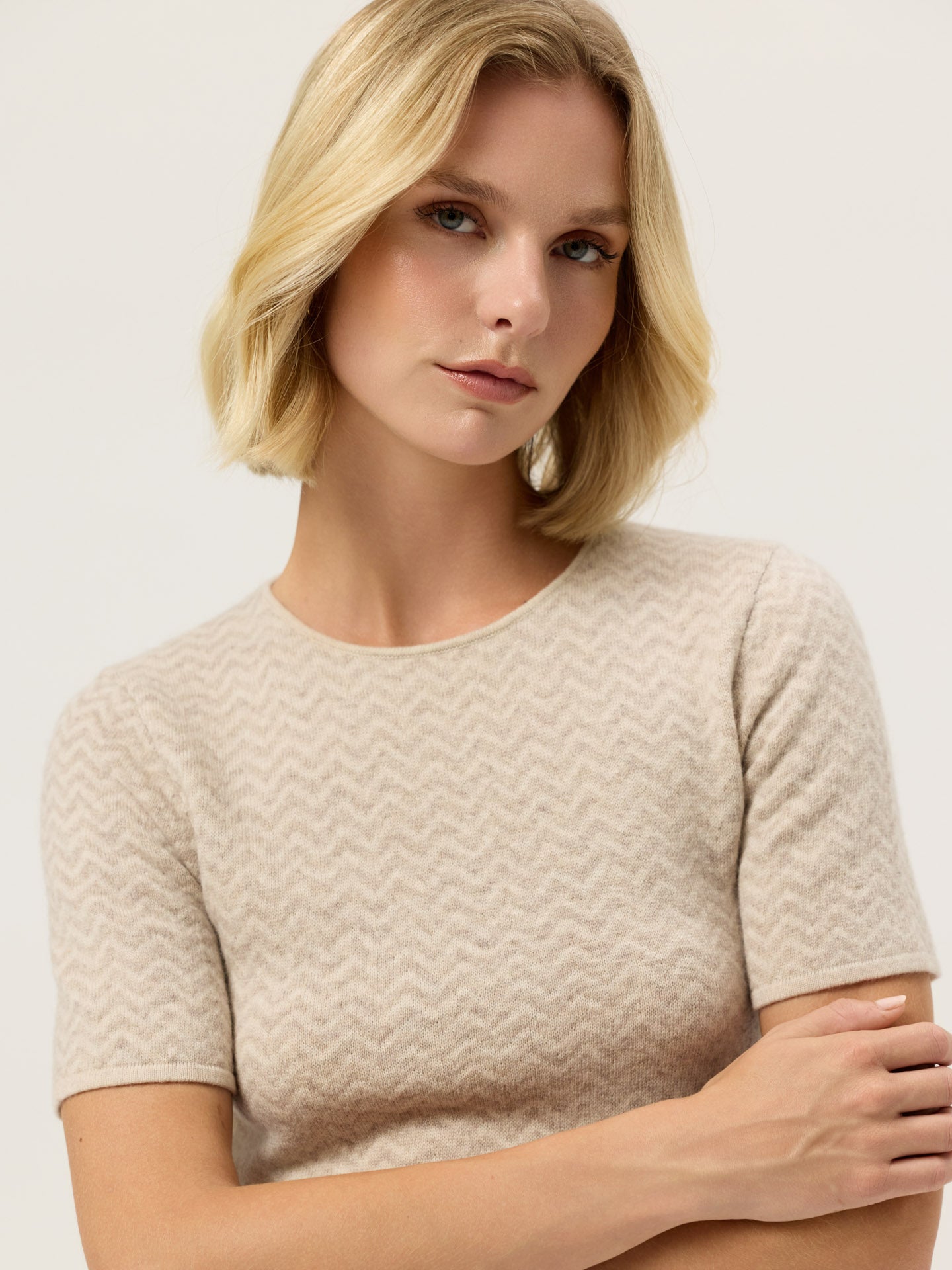 Measure from where the seams on the shoulder meet to where you want the sleeve to end.