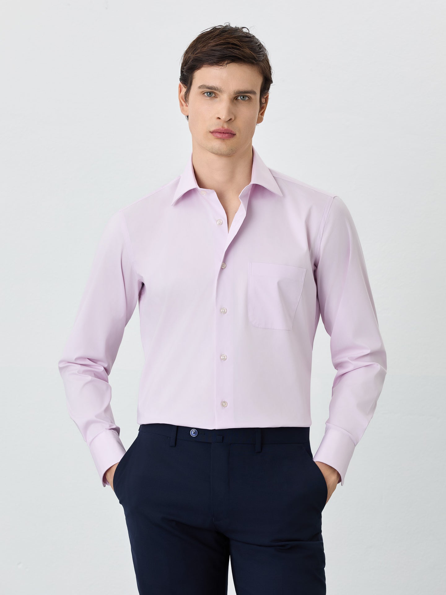 The men's suits from Sacoor Brothers are available with 'Drop 5' and 'Drop 6'. This designation refers to the difference between the blazer size and the trouser size. When ordering a size 46 with 'Drop 5', the trousers will be around size 41, while 'Drop 6' will result in trousers of size 40.