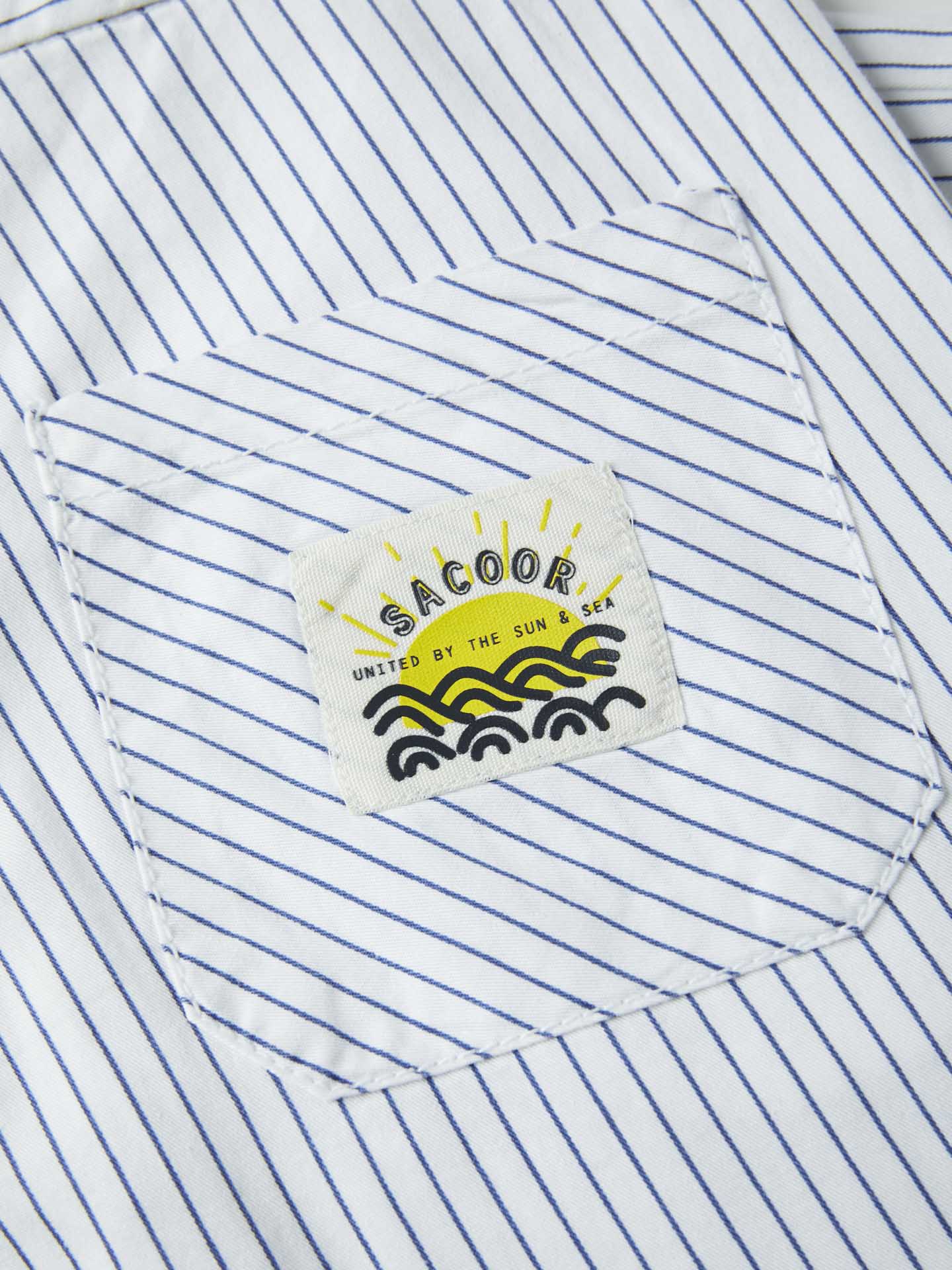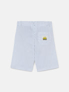 Striped garment dye bermuda shorts in 100% cotton. Closure through zip fly and button at waistband, belt loops, slash pockets at ffront and patch pocket on the back with cotton canvas special summer label. It features a Sacoor Flag Label on the ffront pocket.